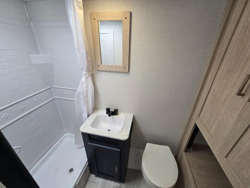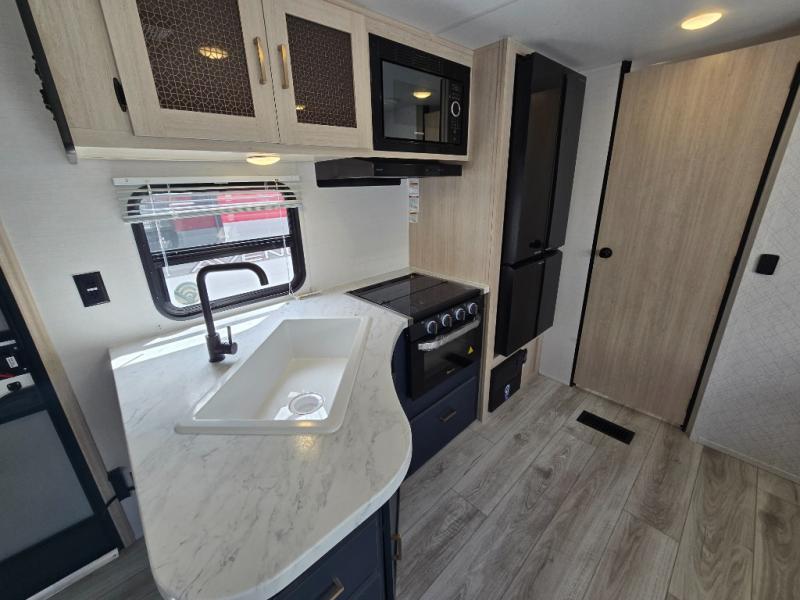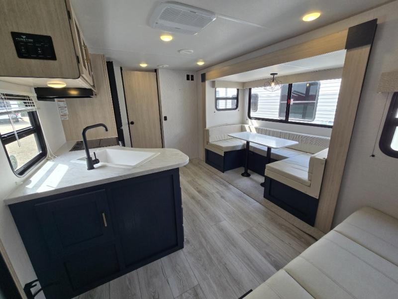 With any Avenger LE travel trailer by Prime Time RV you will enjoy at-home comforts while at the campground! Durable construction begins with an enclosed and heated underbelly, a one-piece roof membrane, and diamond plate front rock guard for added protection against debris during transport. There are also locking magnetic latches on the baggage doors, fully vented windows throughout, four stabilizer jacks, plus solar prep if you want the option to go off-grid. The interior will have you feeling right at home with residential extended ball bearing drawer glides, seamless Carefree Congoleum flooring, an XL single basin kitchen sink, and shower pans in all models that will make it easy to get in and out of the bath. Some of the convenient appliances and equipment you will appreciate are the 15,000 BTU A/C, 12V high-capacity water pump, Slim Profile range hood, and the Winegard 360+ antenna with Wi-Fi prep!
