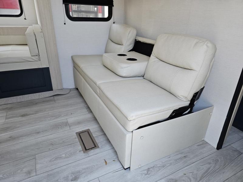 With any Avenger LE travel trailer by Prime Time RV you will enjoy at-home comforts while at the campground! Durable construction begins with an enclosed and heated underbelly, a one-piece roof membrane, and diamond plate front rock guard for added protection against debris during transport. There are also locking magnetic latches on the baggage doors, fully vented windows throughout, four stabilizer jacks, plus solar prep if you want the option to go off-grid. The interior will have you feeling right at home with residential extended ball bearing drawer glides, seamless Carefree Congoleum flooring, an XL single basin kitchen sink, and shower pans in all models that will make it easy to get in and out of the bath. Some of the convenient appliances and equipment you will appreciate are the 15,000 BTU A/C, 12V high-capacity water pump, Slim Profile range hood, and the Winegard 360+ antenna with Wi-Fi prep!