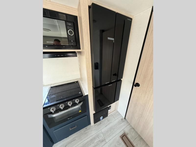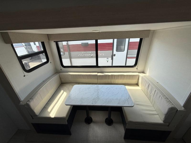 With any Avenger LE travel trailer by Prime Time RV you will enjoy at-home comforts while at the campground! Durable construction begins with an enclosed and heated underbelly, a one-piece roof membrane, and diamond plate front rock guard for added protection against debris during transport. There are also locking magnetic latches on the baggage doors, fully vented windows throughout, four stabilizer jacks, plus solar prep if you want the option to go off-grid. The interior will have you feeling right at home with residential extended ball bearing drawer glides, seamless Carefree Congoleum flooring, an XL single basin kitchen sink, and shower pans in all models that will make it easy to get in and out of the bath. Some of the convenient appliances and equipment you will appreciate are the 15,000 BTU A/C, 12V high-capacity water pump, Slim Profile range hood, and the Winegard 360+ antenna with Wi-Fi prep!