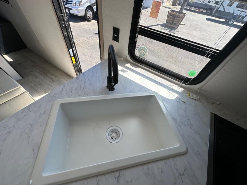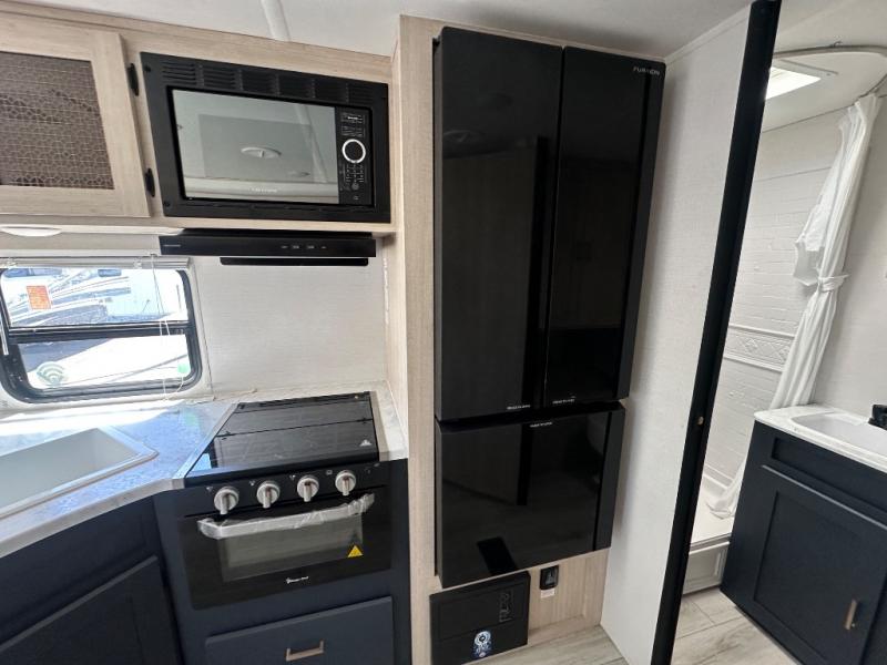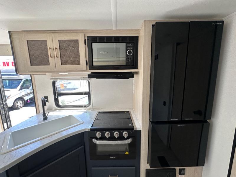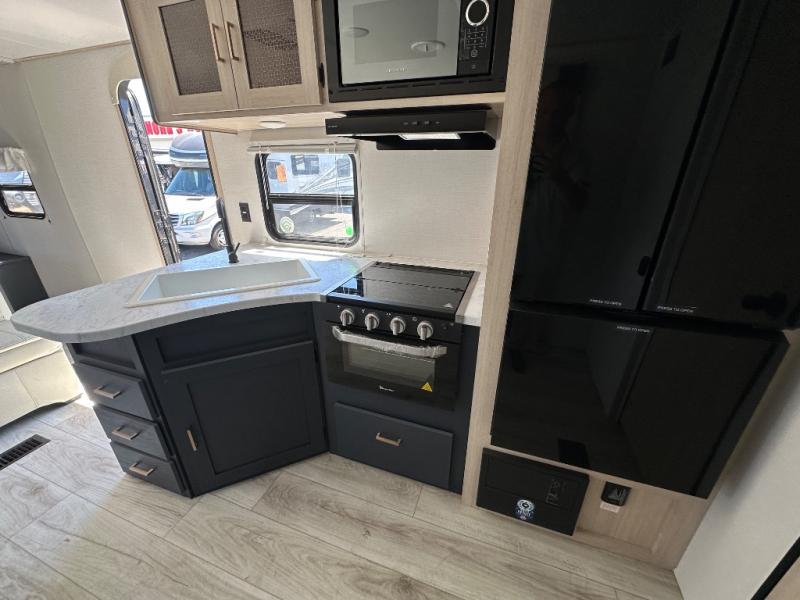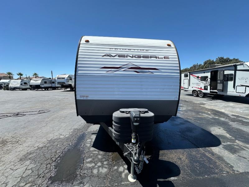 With any Avenger LE travel trailer by Prime Time RV you will enjoy at-home comforts while at the campground! Durable construction begins with an enclosed and heated underbelly, a one-piece roof membrane, and diamond plate front rock guard for added protection against debris during transport. There are also locking magnetic latches on the baggage doors, fully vented windows throughout, four stabilizer jacks, plus solar prep if you want the option to go off-grid. The interior will have you feeling right at home with residential extended ball bearing drawer glides, seamless Carefree Congoleum flooring, an XL single basin kitchen sink, and shower pans in all models that will make it easy to get in and out of the bath. Some of the convenient appliances and equipment you will appreciate are the 15,000 BTU A/C, 12V high-capacity water pump, Slim Profile range hood, and the Winegard 360+ antenna with Wi-Fi prep!