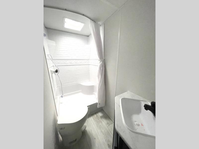 With any Avenger LE travel trailer by Prime Time RV you will enjoy at-home comforts while at the campground! Durable construction begins with an enclosed and heated underbelly, a one-piece roof membrane, and diamond plate front rock guard for added protection against debris during transport. There are also locking magnetic latches on the baggage doors, fully vented windows throughout, four stabilizer jacks, plus solar prep if you want the option to go off-grid. The interior will have you feeling right at home with residential extended ball bearing drawer glides, seamless Carefree Congoleum flooring, an XL single basin kitchen sink, and shower pans in all models that will make it easy to get in and out of the bath. Some of the convenient appliances and equipment you will appreciate are the 15,000 BTU A/C, 12V high-capacity water pump, Slim Profile range hood, and the Winegard 360+ antenna with Wi-Fi prep!