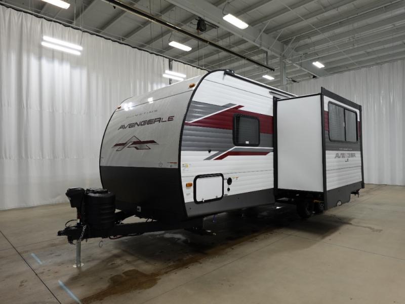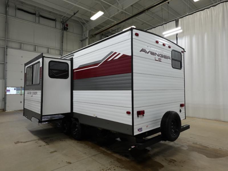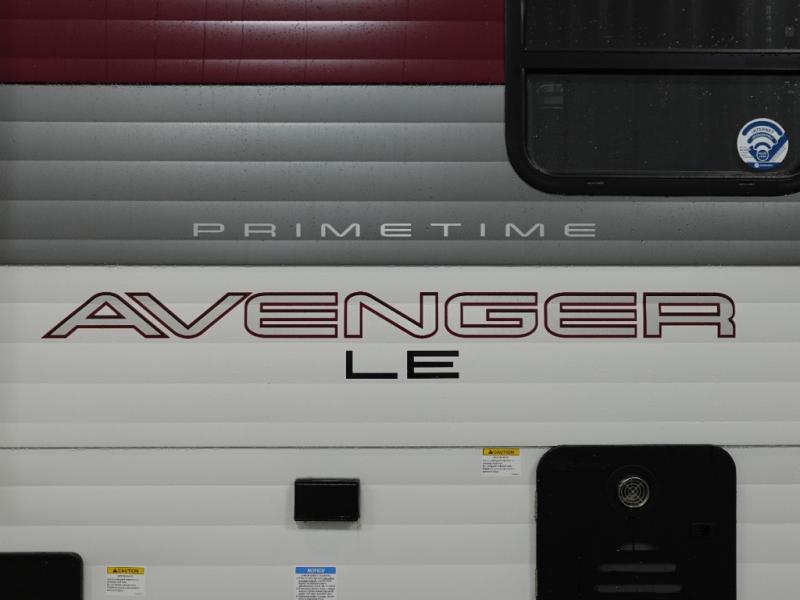 With any Avenger LE travel trailer by Prime Time RV you will enjoy at-home comforts while at the campground! Durable construction begins with an enclosed and heated underbelly, a one-piece roof membrane, and diamond plate front rock guard for added protection against debris during transport. There are also locking magnetic latches on the baggage doors, fully vented windows throughout, four stabilizer jacks, plus solar prep if you want the option to go off-grid. The interior will have you feeling right at home with residential extended ball bearing drawer glides, seamless Carefree Congoleum flooring, an XL single basin kitchen sink, and shower pans in all models that will make it easy to get in and out of the bath. Some of the convenient appliances and equipment you will appreciate are the 15,000 BTU A/C, 12V high-capacity water pump, Slim Profile range hood, and the Winegard 360+ antenna with Wi-Fi prep!