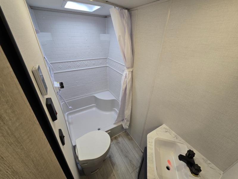 With any Avenger LE travel trailer by Prime Time RV you will enjoy at-home comforts while at the campground! Durable construction begins with an enclosed and heated underbelly, a one-piece roof membrane, and diamond plate front rock guard for added protection against debris during transport. There are also locking magnetic latches on the baggage doors, fully vented windows throughout, four stabilizer jacks, plus solar prep if you want the option to go off-grid. The interior will have you feeling right at home with residential extended ball bearing drawer glides, seamless Carefree Congoleum flooring, an XL single basin kitchen sink, and shower pans in all models that will make it easy to get in and out of the bath. Some of the convenient appliances and equipment you will appreciate are the 15,000 BTU A/C, 12V high-capacity water pump, Slim Profile range hood, and the Winegard 360+ antenna with Wi-Fi prep!