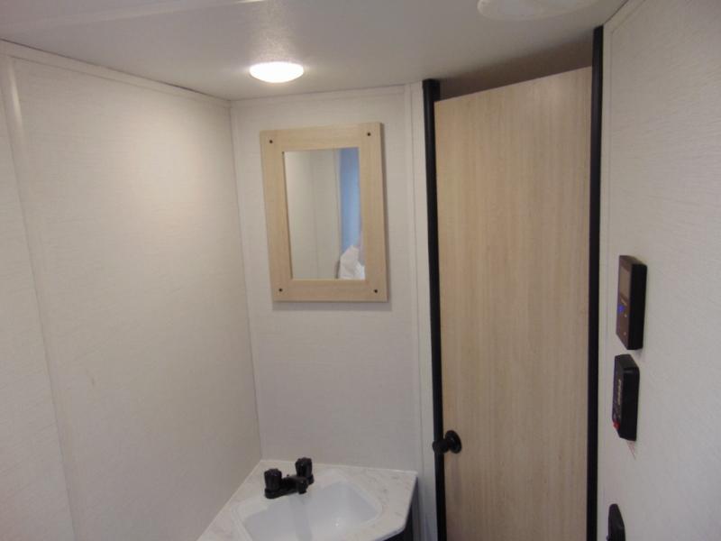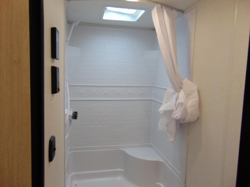 With any Avenger LE travel trailer by Prime Time RV you will enjoy at-home comforts while at the campground! Durable construction begins with an enclosed and heated underbelly, a one-piece roof membrane, and diamond plate front rock guard for added protection against debris during transport. There are also locking magnetic latches on the baggage doors, fully vented windows throughout, four stabilizer jacks, plus solar prep if you want the option to go off-grid. The interior will have you feeling right at home with residential extended ball bearing drawer glides, seamless Carefree Congoleum flooring, an XL single basin kitchen sink, and shower pans in all models that will make it easy to get in and out of the bath. Some of the convenient appliances and equipment you will appreciate are the 15,000 BTU A/C, 12V high-capacity water pump, Slim Profile range hood, and the Winegard 360+ antenna with Wi-Fi prep!