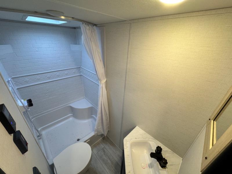 With any Avenger LE travel trailer by Prime Time RV you will enjoy at-home comforts while at the campground! Durable construction begins with an enclosed and heated underbelly, a one-piece roof membrane, and diamond plate front rock guard for added protection against debris during transport. There are also locking magnetic latches on the baggage doors, fully vented windows throughout, four stabilizer jacks, plus solar prep if you want the option to go off-grid. The interior will have you feeling right at home with residential extended ball bearing drawer glides, seamless Carefree Congoleum flooring, an XL single basin kitchen sink, and shower pans in all models that will make it easy to get in and out of the bath. Some of the convenient appliances and equipment you will appreciate are the 15,000 BTU A/C, 12V high-capacity water pump, Slim Profile range hood, and the Winegard 360+ antenna with Wi-Fi prep!
