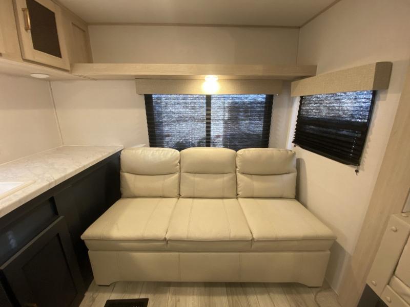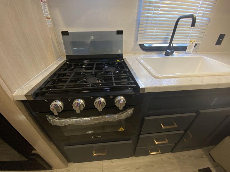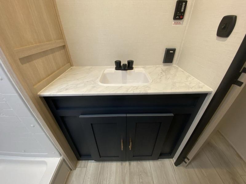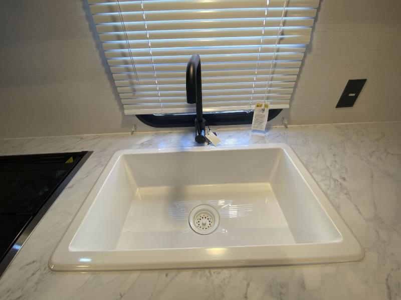 With any Avenger LE travel trailer by Prime Time RV you will enjoy at-home comforts while at the campground! Durable construction begins with an enclosed and heated underbelly, a one-piece roof membrane, and diamond plate front rock guard for added protection against debris during transport. There are also locking magnetic latches on the baggage doors, fully vented windows throughout, four stabilizer jacks, plus solar prep if you want the option to go off-grid. The interior will have you feeling right at home with residential extended ball bearing drawer glides, seamless Carefree Congoleum flooring, an XL single basin kitchen sink, and shower pans in all models that will make it easy to get in and out of the bath. Some of the convenient appliances and equipment you will appreciate are the 15,000 BTU A/C, 12V high-capacity water pump, Slim Profile range hood, and the Winegard 360+ antenna with Wi-Fi prep!