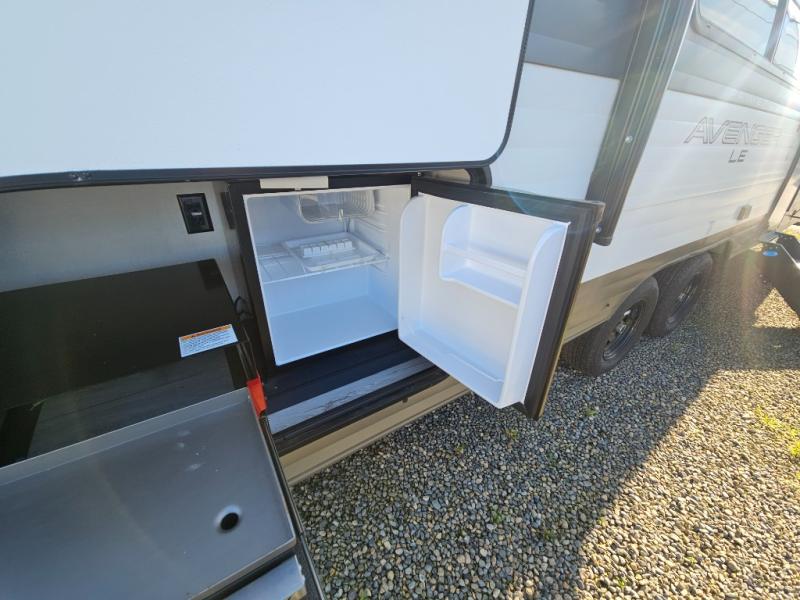 With any Avenger LE travel trailer by Prime Time RV you will enjoy at-home comforts while at the campground! Durable construction begins with an enclosed and heated underbelly, a one-piece roof membrane, and diamond plate front rock guard for added protection against debris during transport. There are also locking magnetic latches on the baggage doors, fully vented windows throughout, four stabilizer jacks, plus solar prep if you want the option to go off-grid. The interior will have you feeling right at home with residential extended ball bearing drawer glides, seamless Carefree Congoleum flooring, an XL single basin kitchen sink, and shower pans in all models that will make it easy to get in and out of the bath. Some of the convenient appliances and equipment you will appreciate are the 15,000 BTU A/C, 12V high-capacity water pump, Slim Profile range hood, and the Winegard 360+ antenna with Wi-Fi prep!
