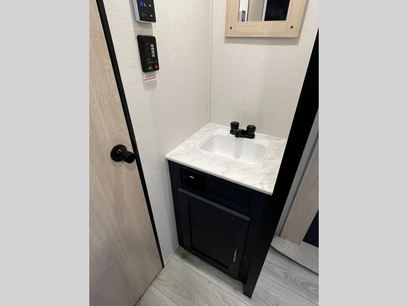 With any Avenger LE travel trailer by Prime Time RV you will enjoy at-home comforts while at the campground! Durable construction begins with an enclosed and heated underbelly, a one-piece roof membrane, and diamond plate front rock guard for added protection against debris during transport. There are also locking magnetic latches on the baggage doors, fully vented windows throughout, four stabilizer jacks, plus solar prep if you want the option to go off-grid. The interior will have you feeling right at home with residential extended ball bearing drawer glides, seamless Carefree Congoleum flooring, an XL single basin kitchen sink, and shower pans in all models that will make it easy to get in and out of the bath. Some of the convenient appliances and equipment you will appreciate are the 15,000 BTU A/C, 12V high-capacity water pump, Slim Profile range hood, and the Winegard 360+ antenna with Wi-Fi prep!