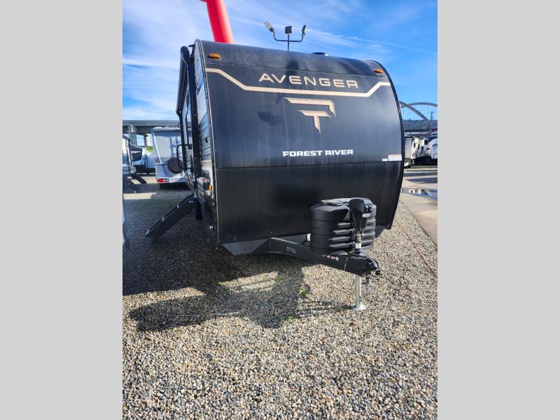 With any Avenger LE travel trailer by Prime Time RV you will enjoy at-home comforts while at the campground! Durable construction begins with an enclosed and heated underbelly, a one-piece roof membrane, and diamond plate front rock guard for added protection against debris during transport. There are also locking magnetic latches on the baggage doors, fully vented windows throughout, four stabilizer jacks, plus solar prep if you want the option to go off-grid. The interior will have you feeling right at home with residential extended ball bearing drawer glides, seamless Carefree Congoleum flooring, an XL single basin kitchen sink, and shower pans in all models that will make it easy to get in and out of the bath. Some of the convenient appliances and equipment you will appreciate are the 15,000 BTU A/C, 12V high-capacity water pump, Slim Profile range hood, and the Winegard 360+ antenna with Wi-Fi prep!