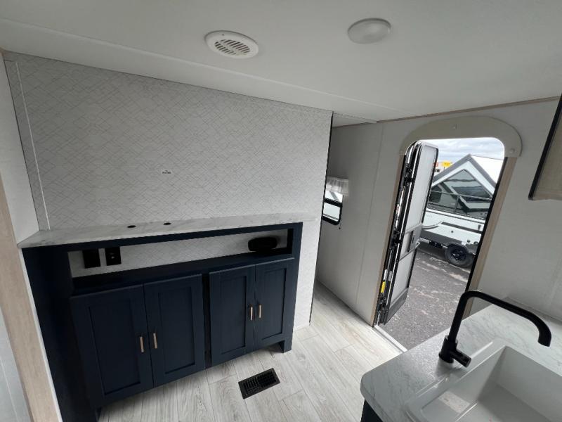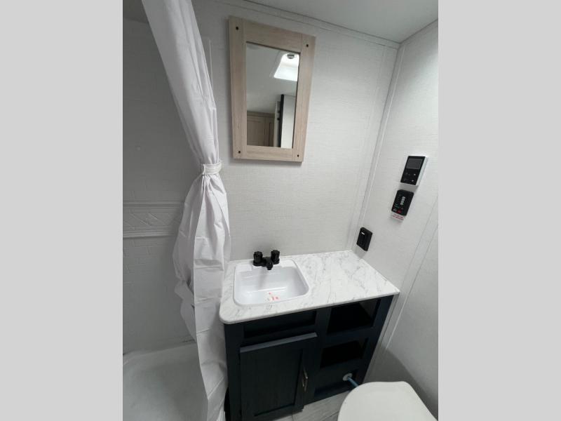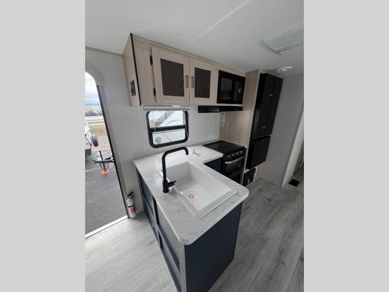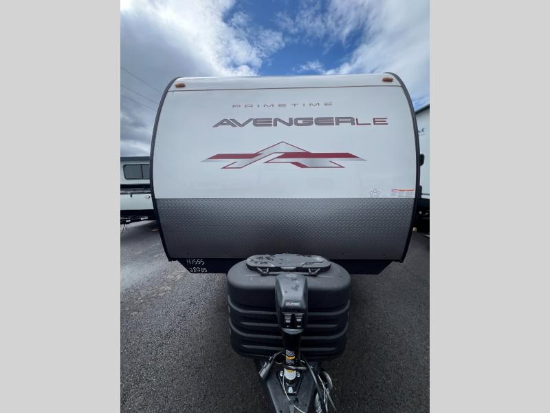 With any Avenger LE travel trailer by Prime Time RV you will enjoy at-home comforts while at the campground! Durable construction begins with an enclosed and heated underbelly, a one-piece roof membrane, and diamond plate front rock guard for added protection against debris during transport. There are also locking magnetic latches on the baggage doors, fully vented windows throughout, four stabilizer jacks, plus solar prep if you want the option to go off-grid. The interior will have you feeling right at home with residential extended ball bearing drawer glides, seamless Carefree Congoleum flooring, an XL single basin kitchen sink, and shower pans in all models that will make it easy to get in and out of the bath. Some of the convenient appliances and equipment you will appreciate are the 15,000 BTU A/C, 12V high-capacity water pump, Slim Profile range hood, and the Winegard 360+ antenna with Wi-Fi prep!