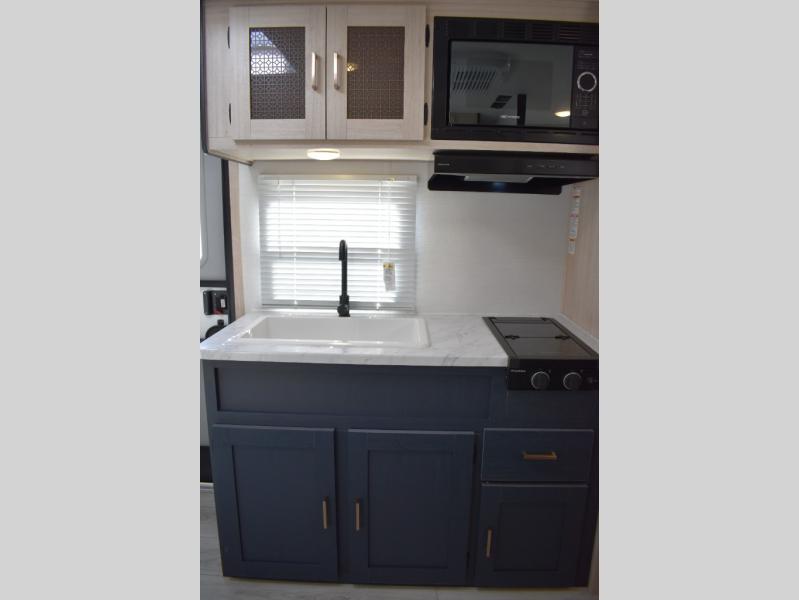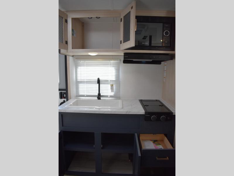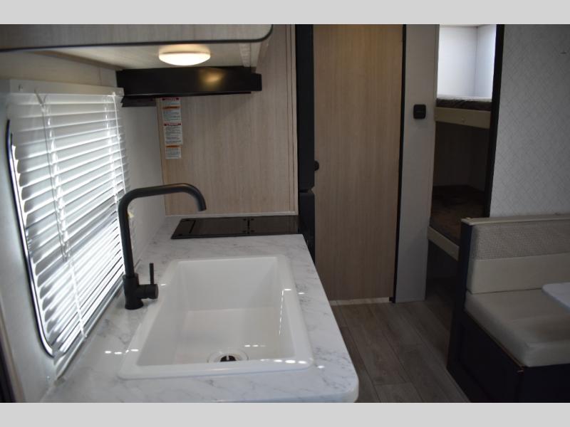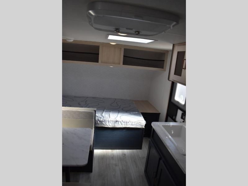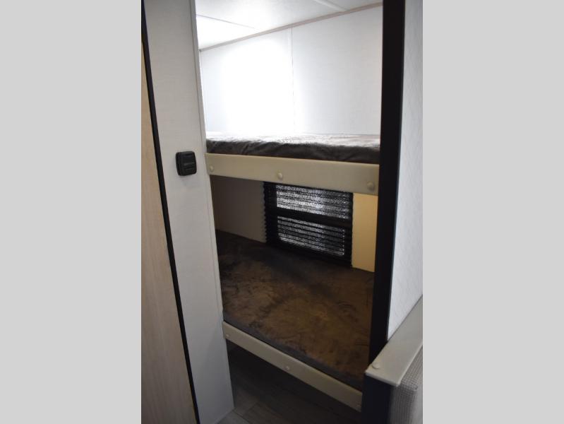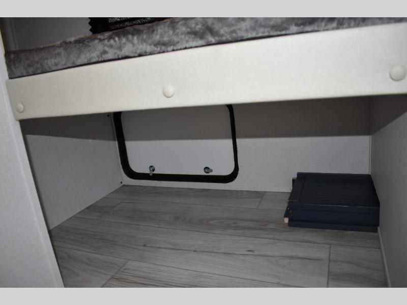 Compact and loaded with comfort and convenience for you to enjoy each and every camping trip! Because this trailer is easily towable, you'll be ready in no time. After a day of hiking, the kids will love sleeping on the bunk beds, and you can sleep on the front bed. And with enough storage space for your valuables and board games, this trailer makes camping easy!