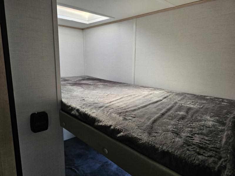 Compact and loaded with comfort and convenience for you to enjoy each and every camping trip! Because this trailer is easily towable, you'll be ready in no time. After a day of hiking, the kids will love sleeping on the bunk beds, and you can sleep on the front bed. And with enough storage space for your valuables and board games, this trailer makes camping easy!
