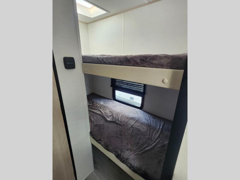 Compact and loaded with comfort and convenience for you to enjoy each and every camping trip! Because this trailer is easily towable, you'll be ready in no time. After a day of hiking, the kids will love sleeping on the bunk beds, and you can sleep on the front bed. And with enough storage space for your valuables and board games, this trailer makes camping easy!