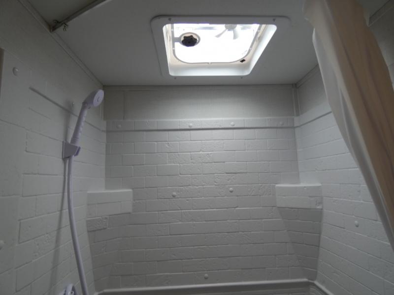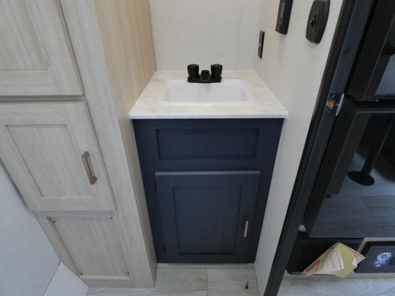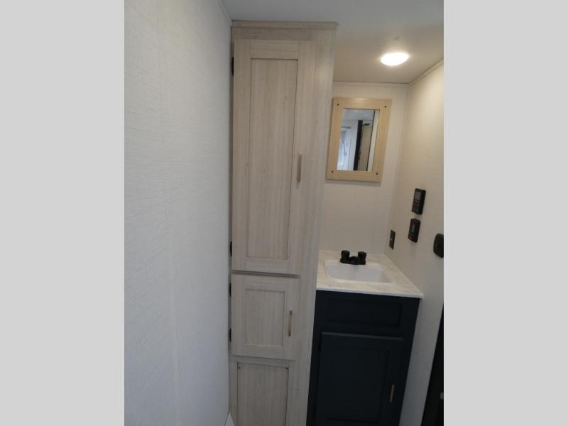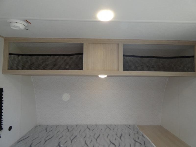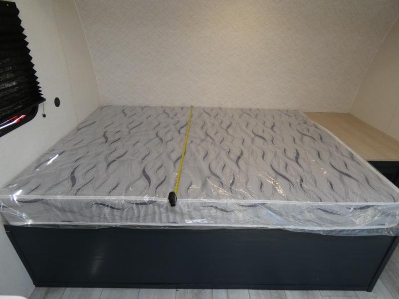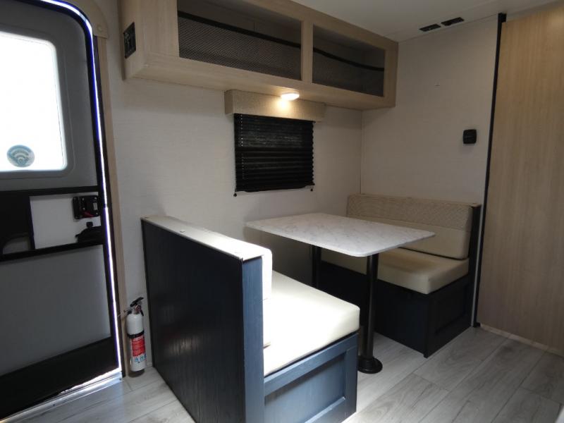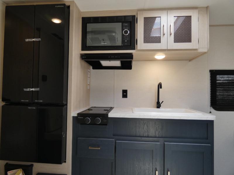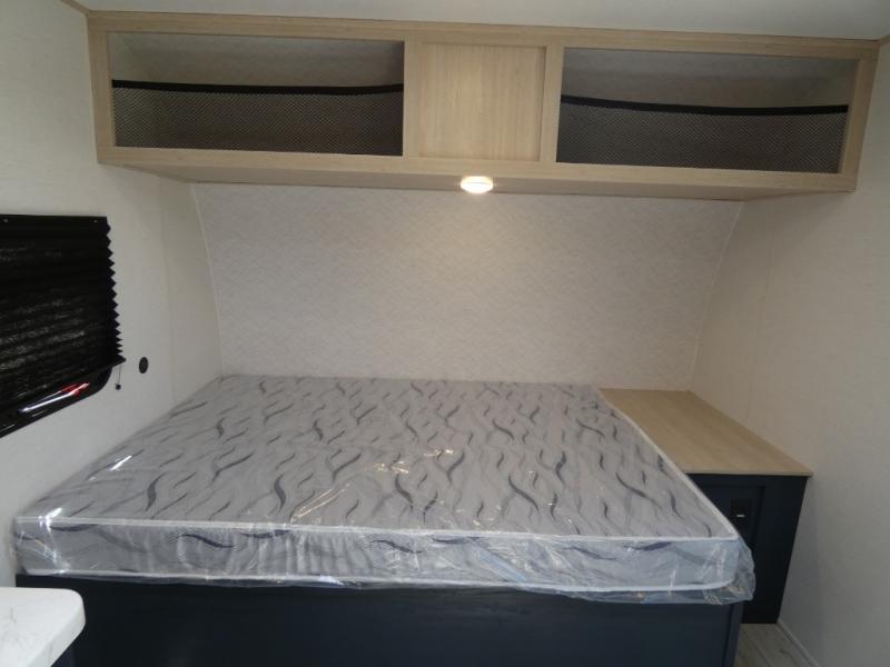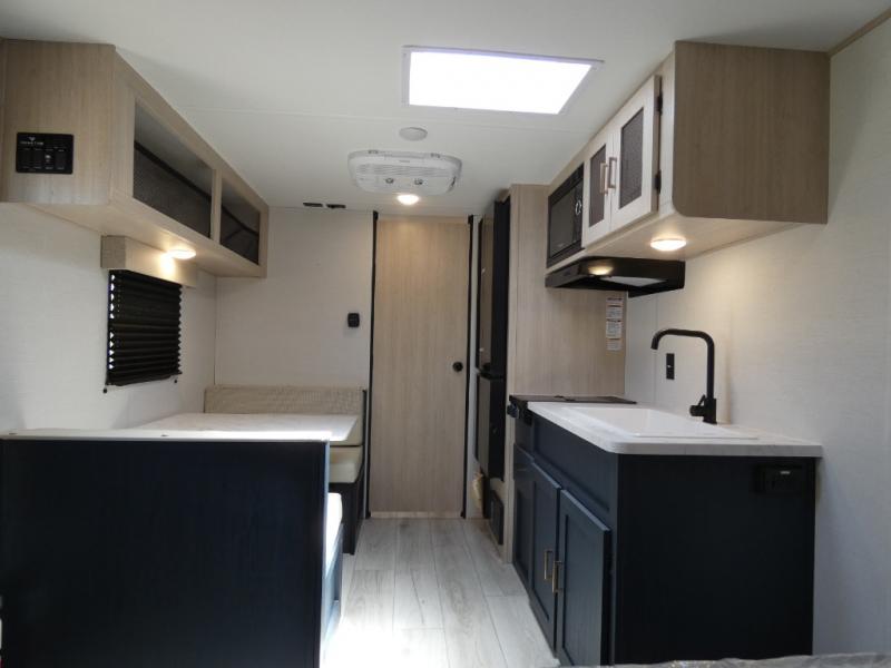 You'll love spending time outdoors with the LED-lit power awning. When you get tired from your day of hiking, relax on the front queen bed with a nightstand and overhead cabinets to hold your clothing and such. And you'll appreciate the extra lighting from the kitchen skylight as you cook with the two-burner cooktop or microwave.