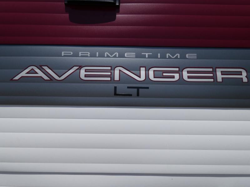 With any Avenger LT travel trailer by Prime Time, the exterior includes an aerodynamic smooth front metal, a front diamond plate for protection on the road, and two stabilizer jacks. There is also exclusive Everlast construction, a PVC roof membrane, and solar prep for the option to go off-grid. The interior offers seamless Carefree Congoleum flooring for easy cleanup and durability, pleated night shades throughout for privacy, a bottle opener, and residential extended ball bearing drawer guides.