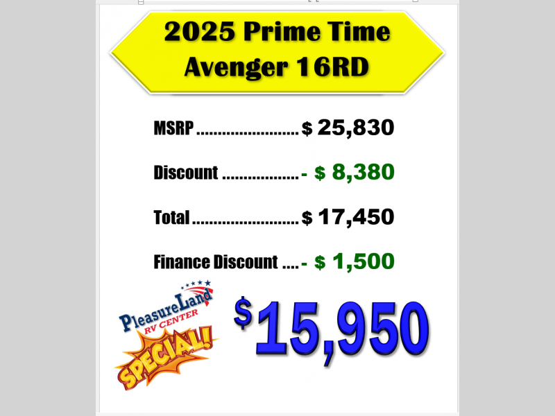 New 2025 Prime Time RV Avenger LT 16RD Travel Trailer