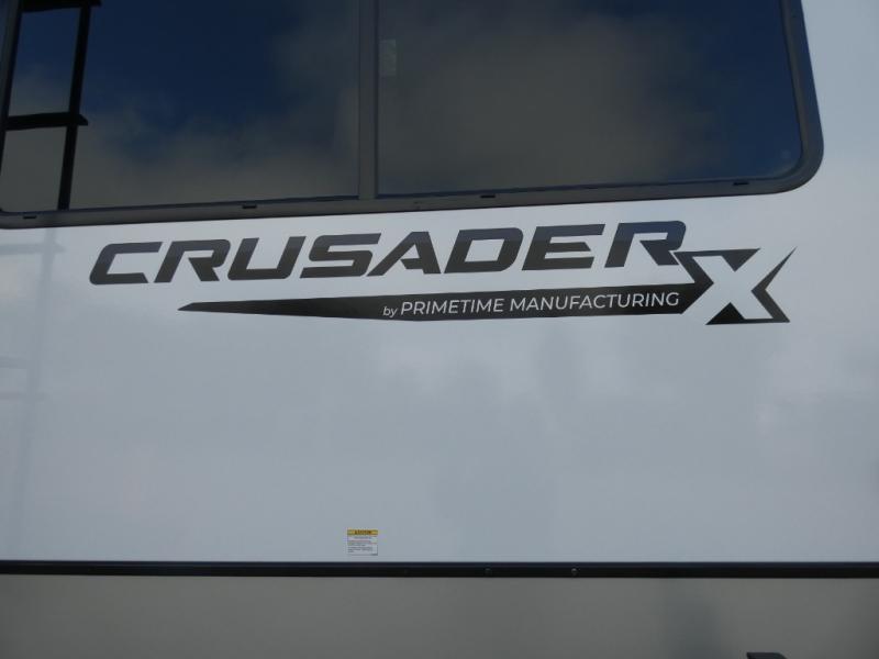 The Crusader X fifth wheels by Prime Time RV are a step above the rest and it's not hard to see why. Each model has been constructed to last with its Eternabond construction, a one-piece PVC roof, and a gel coat fiberglass exterior. The labeled universal docking center will have you set up to camp in no-time, and there is a convenient bottle opener and Doggy D-ring for your furry companions. You will feel right at home with designer countertops, designer carefree linoleum with Scotchgard technology, blackout pleated shades, and many more comforts. The Crusader X also comes standard with a 15,000 BTU A/C, a 35,000 BTU high capacity gas furnace, a tankless on-demand water heater, and the Extreme Thermal Package Plus, making your camping season year-around!