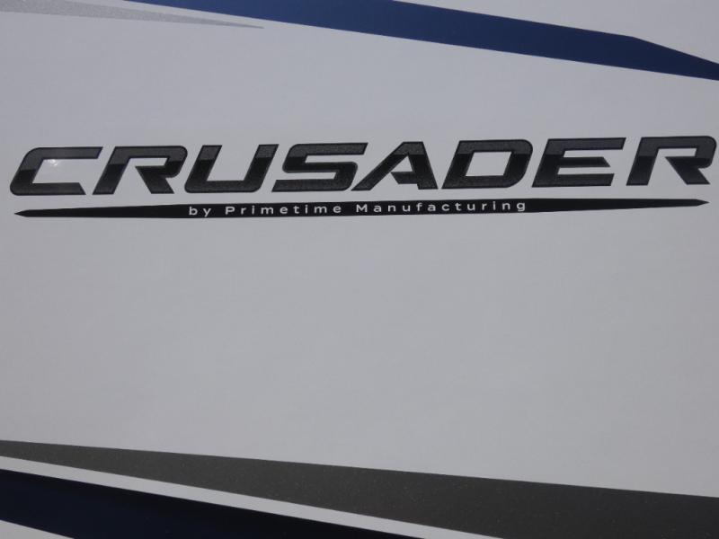 The Crusader fifth wheels by Prime Time RV are a step above the rest and it's not hard to see why. Each model has been constructed to last with its Eternabond construction, a one-piece PVC roof, and high gloss gel coat fiberglass exterior. The auto leveling system and the comprehensive universal docking center will have you set up to camp in no-time, and there is a convenient bottle opener and Doggy D-ring for your furry companions. You will fall in love with the interior that includes heat rated solid surface countertops, designer Carefree linoleum with Scotchgard technology, hardwood cabinet doors, and many more residential comforts. The Crusader also comes standard with dual 15,000 BTU A/C units, a 35,000 BTU high capacity gas furnace, a tankless on-demand water heater, and the Extreme Thermal Package Plus, making your camping season year-around!