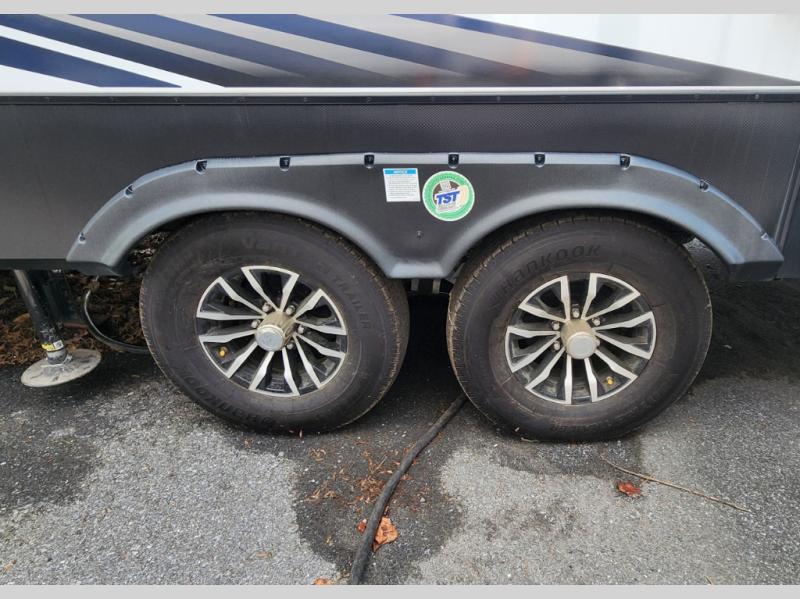 The Crusader fifth wheels by Prime Time RV are a step above the rest and it's not hard to see why. Each model has been constructed to last with its Eternabond construction, a one-piece PVC roof, and high gloss gel coat fiberglass exterior. The auto leveling system and the comprehensive universal docking center will have you set up to camp in no-time, and there is a convenient bottle opener and Doggy D-ring for your furry companions. You will fall in love with the interior that includes heat rated solid surface countertops, designer Carefree linoleum with Scotchgard technology, hardwood cabinet doors, and many more residential comforts. The Crusader also comes standard with dual 15,000 BTU A/C units, a 35,000 BTU high capacity gas furnace, a tankless on-demand water heater, and the Extreme Thermal Package Plus, making your camping season year-around!