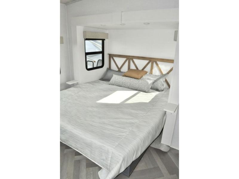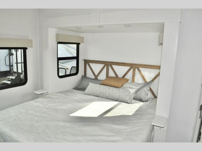 The Crusader fifth wheels by Prime Time RV are a step above the rest and it's not hard to see why. Each model has been constructed to last with its Eternabond construction, a one-piece PVC roof, and high gloss gel coat fiberglass exterior. The auto leveling system and the comprehensive universal docking center will have you set up to camp in no-time, and there is a convenient bottle opener and Doggy D-ring for your furry companions. You will fall in love with the interior that includes heat rated solid surface countertops, designer Carefree linoleum with Scotchgard technology, hardwood cabinet doors, and many more residential comforts. The Crusader also comes standard with dual 15,000 BTU A/C units, a 35,000 BTU high capacity gas furnace, a tankless on-demand water heater, and the Extreme Thermal Package Plus, making your camping season year-around!