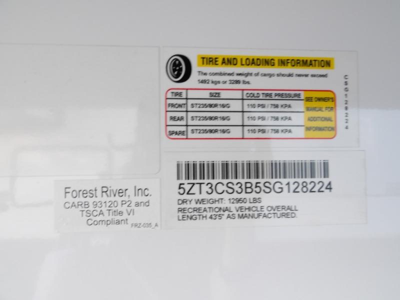 - ADVANTAGE PACKAGE - 16 CU.FT. 12V REFRIGERATOR, 15,000 ?TU DUAL WHISPER QUIET AC, 18 GPH DSI WATER HEATER, 30" MICROWAVE. 5K BTU FIREPLACE, AUTO LEVELING SYSTEM, EXTERNABOND CONSTRUCTION, EXTREME THERMAL PACKAGE, EZ FLEX SUSPENSION, MOTION SENSOR LIGHTING, "SMART ARM" LED LIT POWER AWNING, 190W ROOF MOUNTED SOLAR PANEL, BACK-UP CAMERA PREP, SOLID SURFACE COUNTERTOPS, SUPER TURN FRONT CAP UNIVERSAL DOCKING STATION, SLIDE TOPPER PREP, 13,500 BTU BEDROOM AC