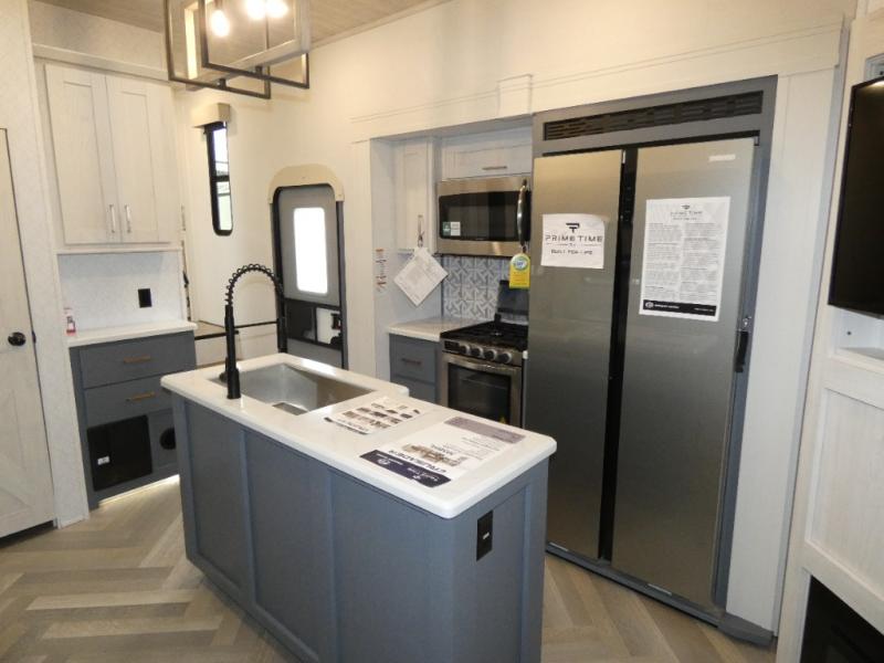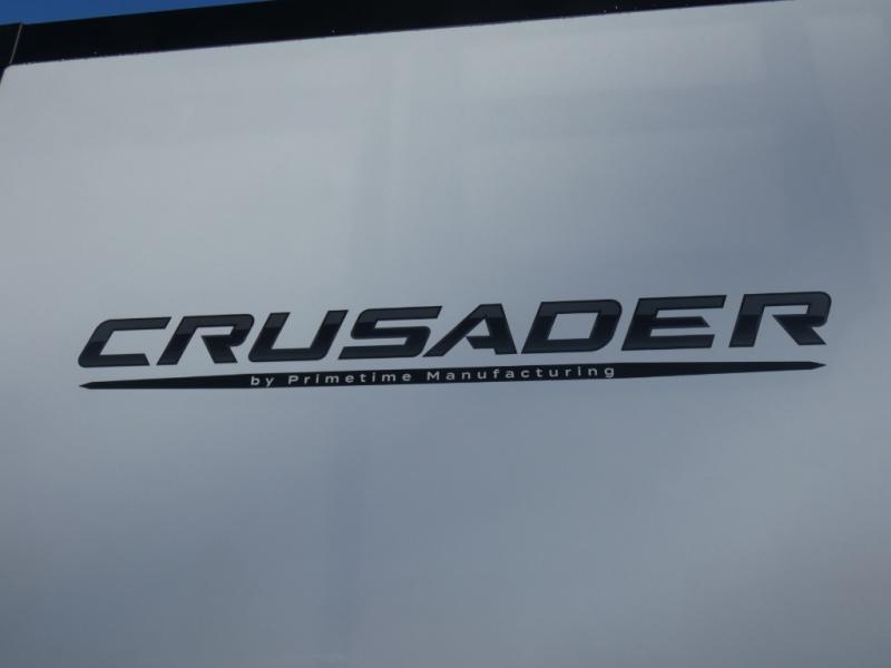 The Crusader fifth wheels by Prime Time RV are a step above the rest and it's not hard to see why. Each model has been constructed to last with its Eternabond construction, a one-piece PVC roof, and high gloss gel coat fiberglass exterior. The auto leveling system and the comprehensive universal docking center will have you set up to camp in no-time, and there is a convenient bottle opener and Doggy D-ring for your furry companions. You will fall in love with the interior that includes heat rated solid surface countertops, designer Carefree linoleum with Scotchgard technology, hardwood cabinet doors, and many more residential comforts. The Crusader also comes standard with dual 15,000 BTU A/C units, a 35,000 BTU high capacity gas furnace, a tankless on-demand water heater, and the Extreme Thermal Package Plus, making your camping season year-around!