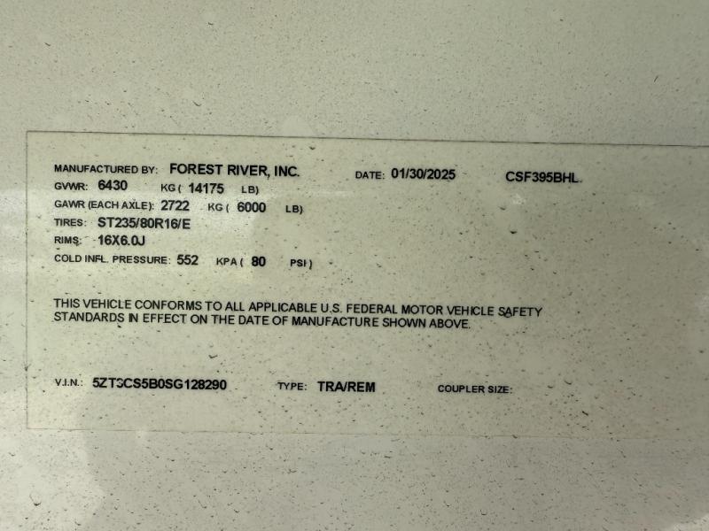 New 2025 Prime Time RV Crusader 395BHL Fifth Wheel