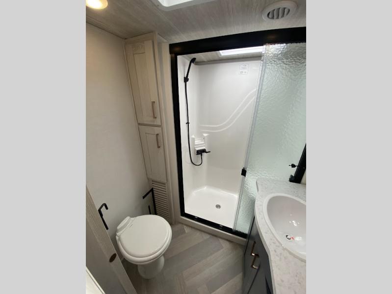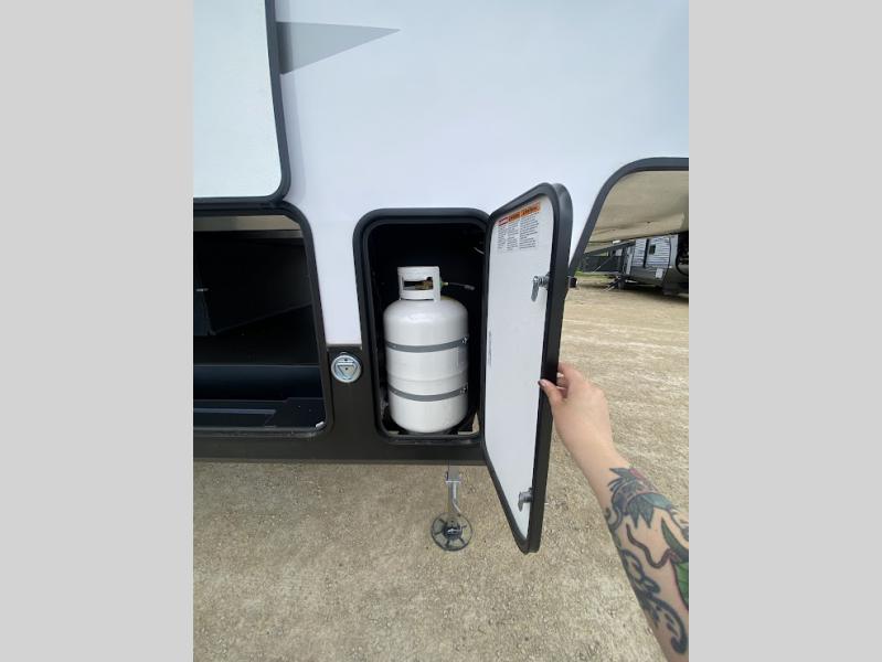 The Crusader fifth wheels by Prime Time RV are a step above the rest and it's not hard to see why. Each model has been constructed to last with its Eternabond construction, a one-piece PVC roof, and high gloss gel coat fiberglass exterior. The auto leveling system and the comprehensive universal docking center will have you set up to camp in no-time, and there is a convenient bottle opener and Doggy D-ring for your furry companions. You will fall in love with the interior that includes heat rated solid surface countertops, designer Carefree linoleum with Scotchgard technology, hardwood cabinet doors, and many more residential comforts. The Crusader also comes standard with dual 15,000 BTU A/C units, a 35,000 BTU high capacity gas furnace, a tankless on-demand water heater, and the Extreme Thermal Package Plus, making your camping season year-around!