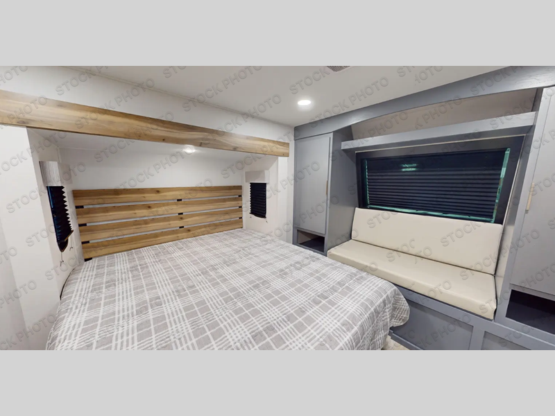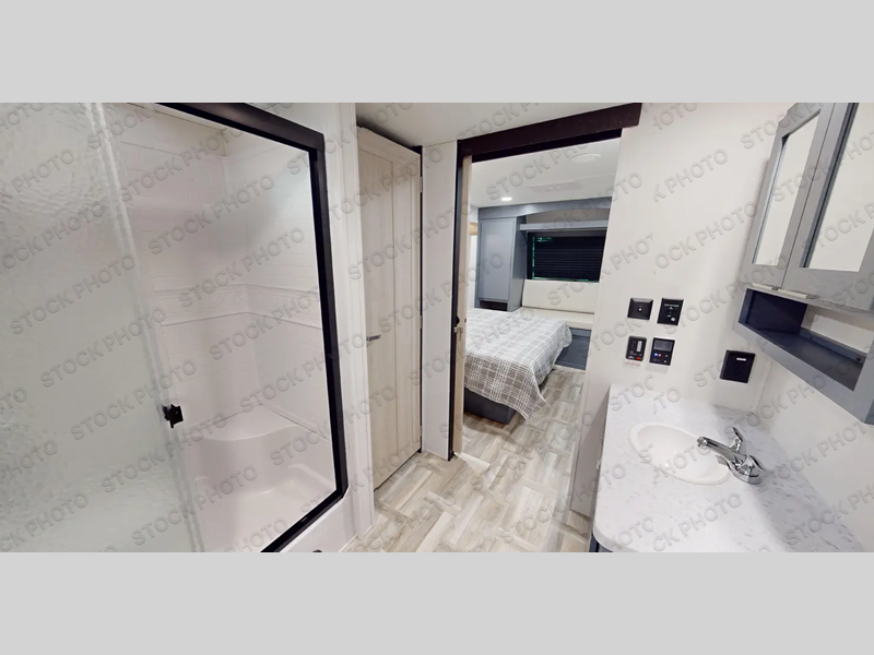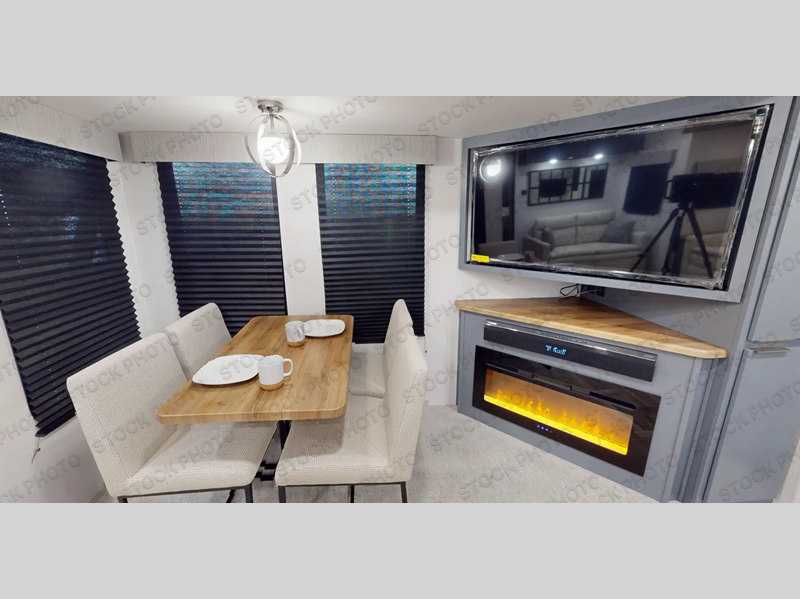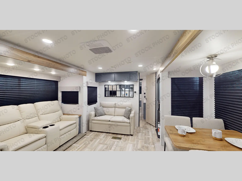 You will be ultra impressed by this LaCrosse travel trailer! First, the interior is made to feel just like your own home with its theater seating, hide-a-bed sofa, free-standing table with chairs, and entertainment center with 50" LED TV and fireplace. Second, you'll find even more residential comfort in the rear kitchen that has a three burner cooktop, a 30" microwave oven, and a 16.2 cubic foot 12V refrigerator. And lastly, the walk-through bathroom has two doors on either side with one of those doors leading directly into the front private bedroom, so you know you'll enjoy great comfort in this space each night. There is also a bedroom bench at the front of this trailer which gives you an enjoyable place to relax as you take in the views from the front windshield.
