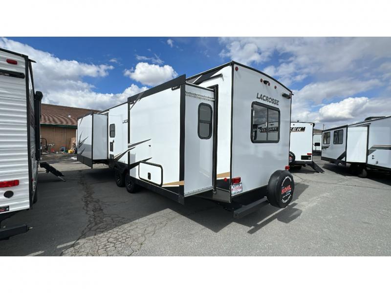 If you used to think that you had to spend a fortune to get a luxury RV, think again because the Prime Time LaCrosse travel trailer proves that you can combine luxury with value! The LaCrosse features premium vinyl flooring, solid surface countertops, an 82" interior ceiling height, motion-sensor LED lighting, and USB ports. On the exterior, the fully enclosed underbelly protects your unit so that you can adventure during colder weather, and the LED-lit electric awning is certainly a valuable feature that allows you to sit outside underneath some shade on a sunny afternoon. Come choose your model today!