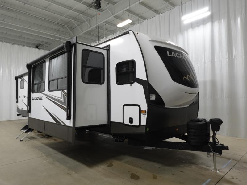 If you used to think that you had to spend a fortune to get a luxury RV, think again because the Prime Time LaCrosse travel trailer proves that you can combine luxury with value! The LaCrosse features premium vinyl flooring, solid surface countertops, an 82" interior ceiling height, motion-sensor LED lighting, and USB ports. On the exterior, the fully enclosed underbelly protects your unit so that you can adventure during colder weather, and the LED-lit electric awning is certainly a valuable feature that allows you to sit outside underneath some shade on a sunny afternoon. Come choose your model today!