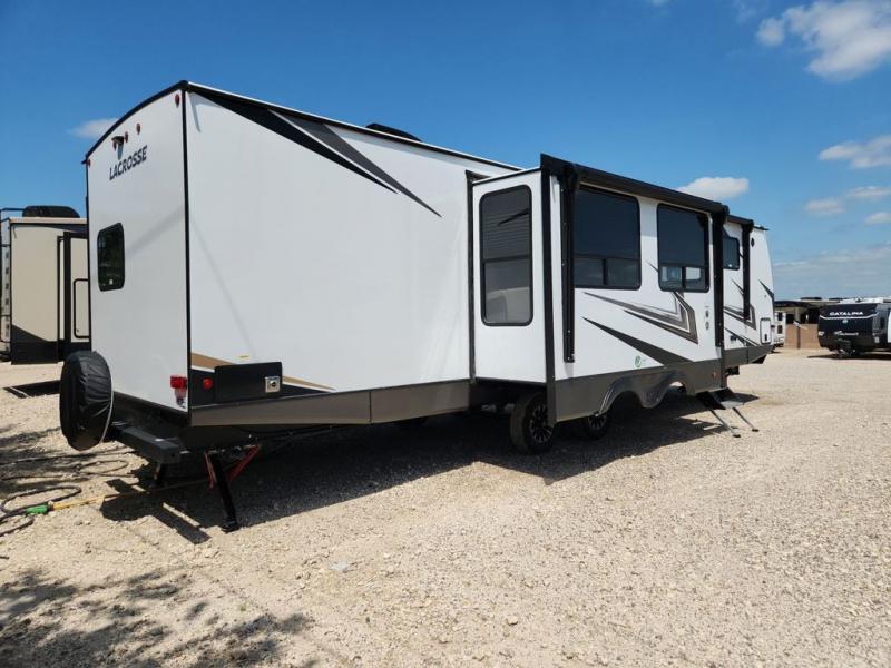 If you used to think that you had to spend a fortune to get a luxury RV, think again because the Prime Time LaCrosse travel trailer proves that you can combine luxury with value! The LaCrosse features premium vinyl flooring, solid surface countertops, an 82" interior ceiling height, motion-sensor LED lighting, and USB ports. On the exterior, the fully enclosed underbelly protects your unit so that you can adventure during colder weather, and the LED-lit electric awning is certainly a valuable feature that allows you to sit outside underneath some shade on a sunny afternoon. Come choose your model today!