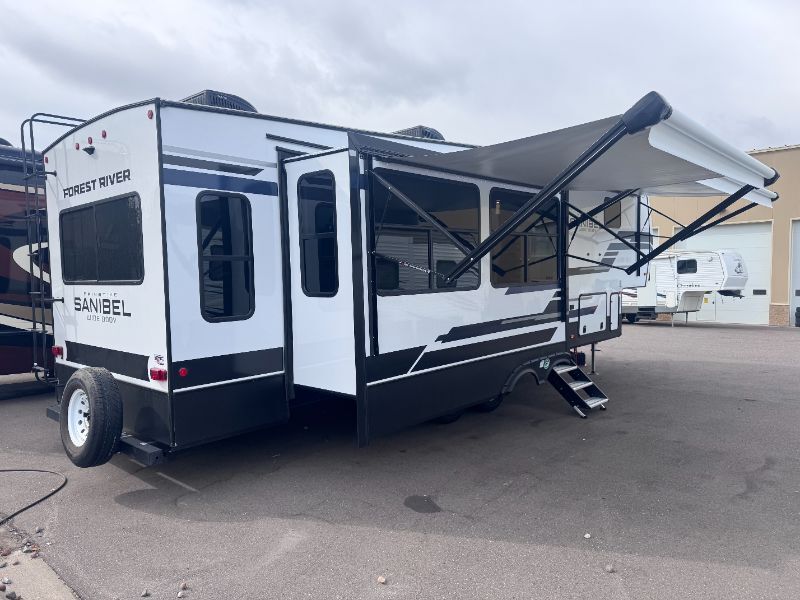 More luxury and more value is what you will find in each one of these Prime Time RV Sanibel fifth wheels! The Extreme Thermal package allows you to extend your camping season by including high density block foam insulation throughout, heated basement storage, and 12V heating pads on tanks. You can keep the party going with the electric awning with LED lighting and high-output exterior speaker, plus there is a Doggy D-Ring and bottle opener for added convenience. Each model also includes Dexter E-Z FLEX rubberized suspension to provide smooth towing on tougher roads, thick insulated pass-through baggage doors, and a high gloss gel coated exterior fiberglass for a more sleek look. Inside, you will enjoy residentially inspired kitchen appliances, real wood cabinet doors, designer Carefree linoleum with Scotchgard Technology, and many more luxurious features!