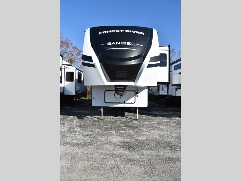 More luxury and more value is what you will find in each one of these Prime Time RV Sanibel fifth wheels! The Extreme Thermal package allows you to extend your camping season by including high density block foam insulation throughout, heated basement storage, and 12V heating pads on tanks. You can keep the party going with the electric awning with LED lighting and high-output exterior speaker, plus there is a Doggy D-Ring and bottle opener for added convenience. Each model also includes Dexter E-Z FLEX rubberized suspension to provide smooth towing on tougher roads, thick insulated pass-through baggage doors, and a high gloss gel coated exterior fiberglass for a more sleek look. Inside, you will enjoy residentially inspired kitchen appliances, real wood cabinet doors, designer Carefree linoleum with Scotchgard Technology, and many more luxurious features!