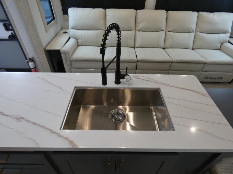 More luxury and more value is what you will find in each one of these Prime Time RV Sanibel fifth wheels! The Extreme Thermal package allows you to extend your camping season by including high density block foam insulation throughout, heated basement storage, and 12V heating pads on tanks. You can keep the party going with the electric awning with LED lighting and high-output exterior speaker, plus there is a Doggy D-Ring and bottle opener for added convenience. Each model also includes Dexter E-Z FLEX rubberized suspension to provide smooth towing on tougher roads, thick insulated pass-through baggage doors, and a high gloss gel coated exterior fiberglass for a more sleek look. Inside, you will enjoy residentially inspired kitchen appliances, real wood cabinet doors, designer Carefree linoleum with Scotchgard Technology, and many more luxurious features!