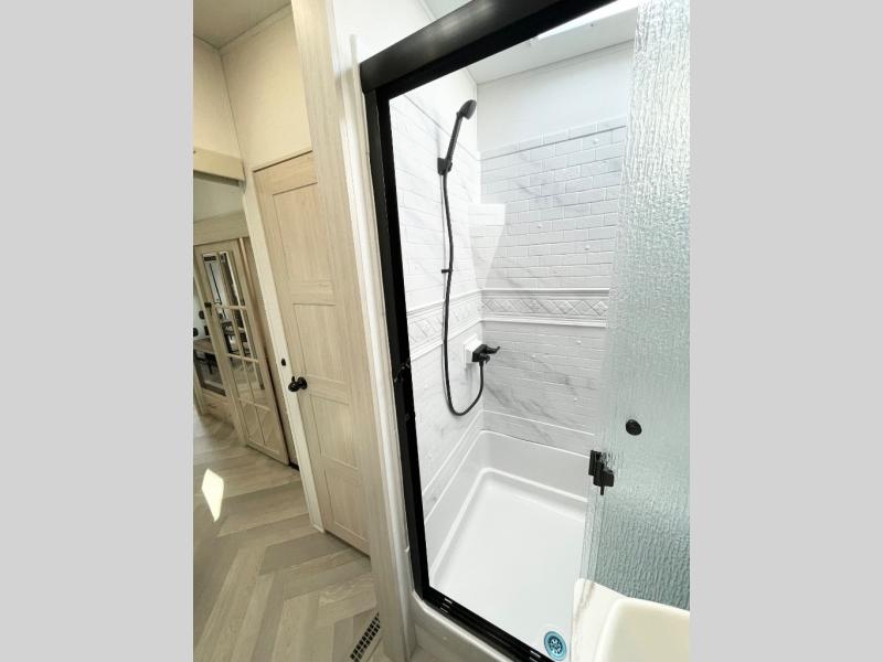More luxury and more value is what you will find in each one of these Prime Time RV Sanibel fifth wheels! The Extreme Thermal package allows you to extend your camping season by including high density block foam insulation throughout, heated basement storage, and 12V heating pads on tanks. You can keep the party going with the electric awning with LED lighting and high-output exterior speaker, plus there is a Doggy D-Ring and bottle opener for added convenience. Each model also includes Dexter E-Z FLEX rubberized suspension to provide smooth towing on tougher roads, thick insulated pass-through baggage doors, and a high gloss gel coated exterior fiberglass for a more sleek look. Inside, you will enjoy residentially inspired kitchen appliances, real wood cabinet doors, designer Carefree linoleum with Scotchgard Technology, and many more luxurious features!