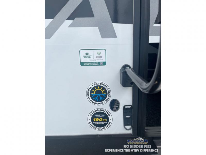 Each Tracer LE travel trailer by Prime Time is made to last with its Eternabond construction, and there is a power awning with LED lights for an inviting outdoor living space. There is a manual tongue jack and manual stabilizer jacks outside, along with an XL grab handle and steel entry steps to provide a sturdy entrance and exit into your trailer. You will fall in love with the interior that includes LED lighting, a stainless steel galley sink, a 15k BTU A/C, and a soundbar to listen to your favorite tunes. You will also love the Tracer LE Solar Package that comes with a 200W solar panel, a 40A MPPT charge controller, and a solar disconnect switch for off-grid capabilities!