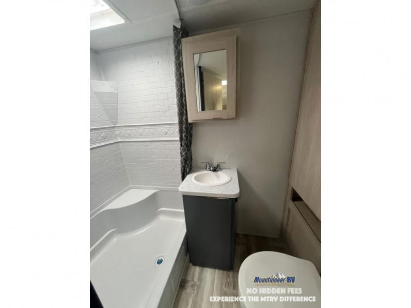 Looking to travel to see new campgrounds and enjoy the outdoors? This trailer offers you that choice then you can return to inside comforts with a queen bed and dual wardrobes and a U-shaped dinette slide out that allows you to provide more sleeping space. The galley kitchen offers a 2-in-1 gas oven and range, plus a large two-door 12V refrigerator and a microwave. The rear full bathroom might just be the reason you wanted this RV thanks to the privacy, the linen storage, and all the amenities that allow you to skip the public facilities.
