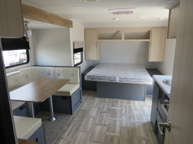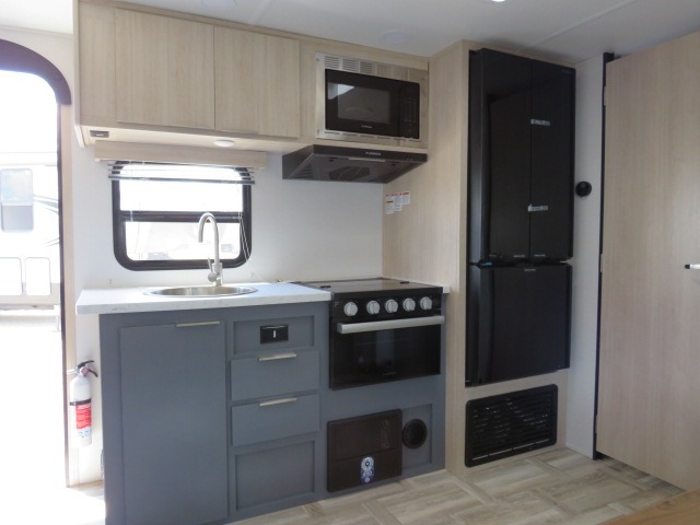Looking to travel to see new campgrounds and enjoy the outdoors? This trailer offers you that choice then you can return to inside comforts with a queen bed and dual wardrobes and a U-shaped dinette slide out that allows you to provide more sleeping space. The galley kitchen offers a 2-in-1 gas oven and range, plus a large two-door 12V refrigerator and a microwave. The rear full bathroom might just be the reason you wanted this RV thanks to the privacy, the linen storage, and all the amenities that allow you to skip the public facilities.