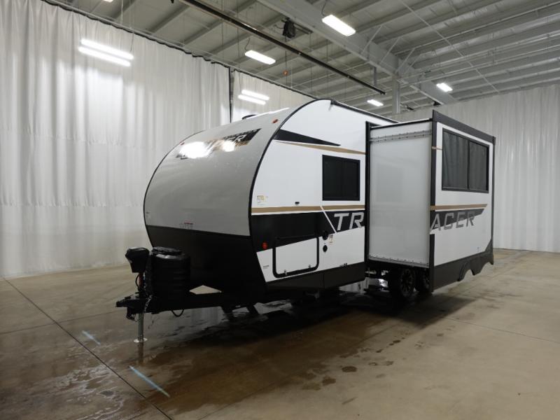 Each Tracer LE travel trailer by Prime Time is made to last with its Eternabond construction, and there is a power awning with LED lights for an inviting outdoor living space. There is a manual tongue jack and manual stabilizer jacks outside, along with an XL grab handle and steel entry steps to provide a sturdy entrance and exit into your trailer. You will fall in love with the interior that includes LED lighting, a stainless steel galley sink, a 15k BTU A/C, and a soundbar to listen to your favorite tunes. You will also love the Tracer LE Solar Package that comes with a 200W solar panel, a 40A MPPT charge controller, and a solar disconnect switch for off-grid capabilities!