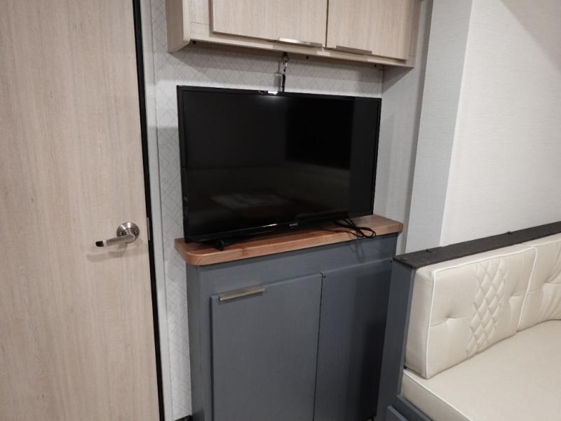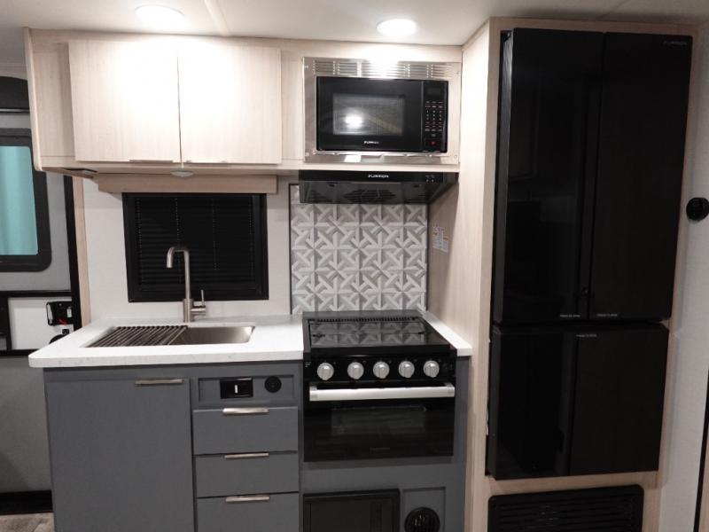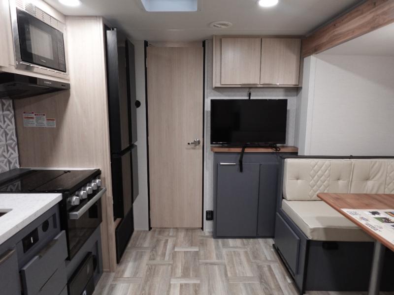 Looking to travel to see new campgrounds and enjoy the outdoors? This trailer offers you that choice then you can return to inside comforts with a queen bed and dual wardrobes and a U-shaped dinette slide out that allows you to provide more sleeping space. The galley kitchen offers a 2-in-1 gas oven and range, plus a large two-door 12V refrigerator and a microwave. The rear full bathroom might just be the reason you wanted this RV thanks to the privacy, the linen storage, and all the amenities that allow you to skip the public facilities.
