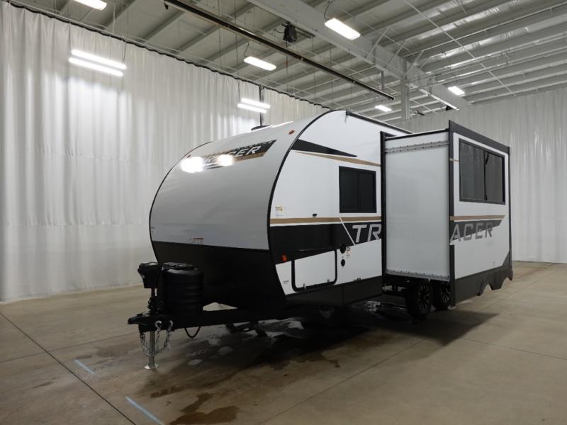 Each Tracer LE travel trailer by Prime Time is made to last with its Eternabond construction, and there is a power awning with LED lights for an inviting outdoor living space. There is a manual tongue jack and manual stabilizer jacks outside, along with an XL grab handle and steel entry steps to provide a sturdy entrance and exit into your trailer. You will fall in love with the interior that includes LED lighting, a stainless steel galley sink, a 15k BTU A/C, and a soundbar to listen to your favorite tunes. You will also love the Tracer LE Solar Package that comes with a 200W solar panel, a 40A MPPT charge controller, and a solar disconnect switch for off-grid capabilities!
