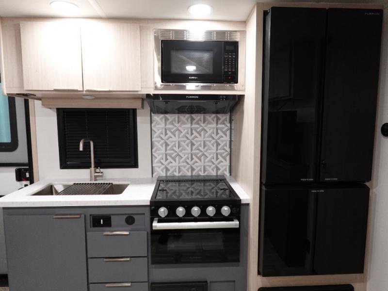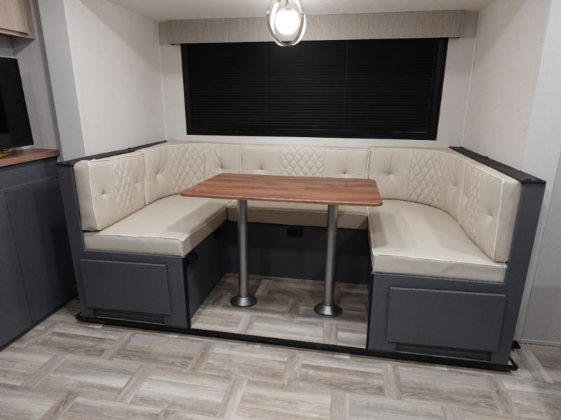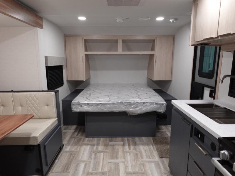 Looking to travel to see new campgrounds and enjoy the outdoors? This trailer offers you that choice then you can return to inside comforts with a queen bed and dual wardrobes and a U-shaped dinette slide out that allows you to provide more sleeping space. The galley kitchen offers a 2-in-1 gas oven and range, plus a large two-door 12V refrigerator and a microwave. The rear full bathroom might just be the reason you wanted this RV thanks to the privacy, the linen storage, and all the amenities that allow you to skip the public facilities.