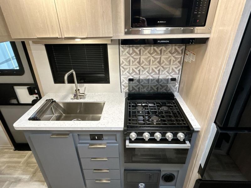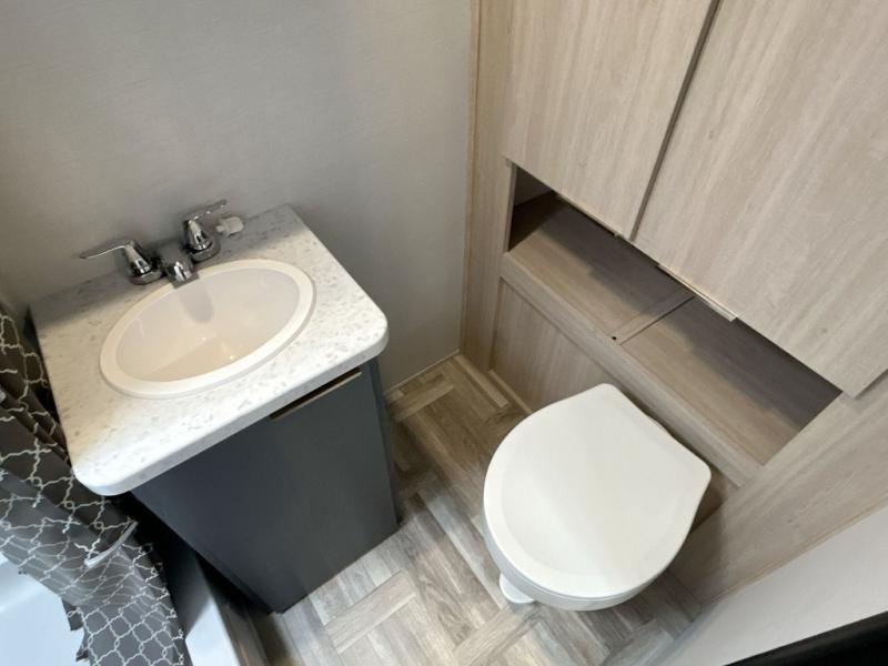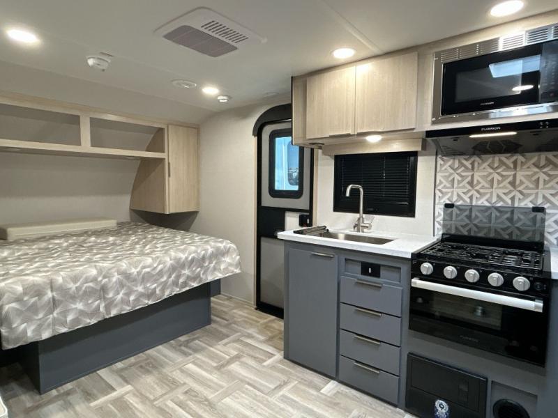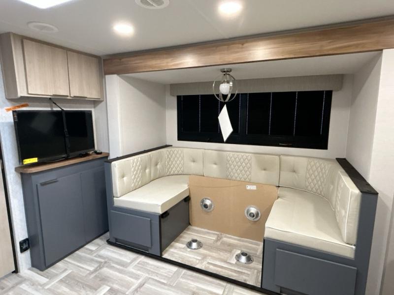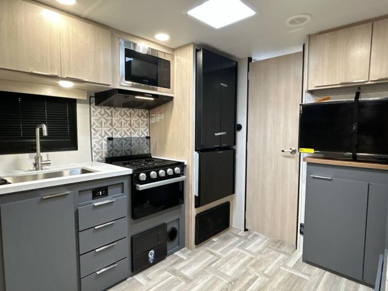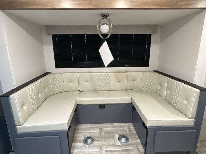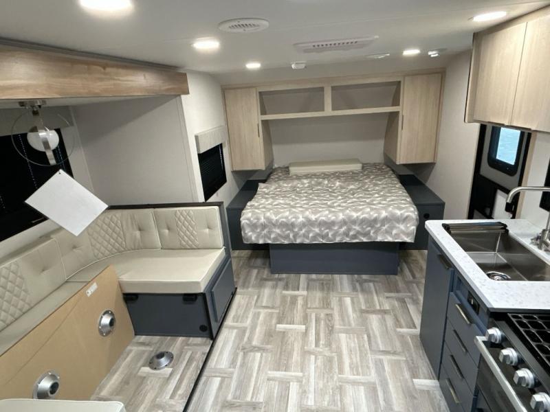 Looking to travel to see new campgrounds and enjoy the outdoors? This trailer offers you that choice then you can return to inside comforts with a queen bed and dual wardrobes and a U-shaped dinette slide out that allows you to provide more sleeping space. The galley kitchen offers a 2-in-1 gas oven and range, plus a large two-door 12V refrigerator and a microwave. The rear full bathroom might just be the reason you wanted this RV thanks to the privacy, the linen storage, and all the amenities that allow you to skip the public facilities.