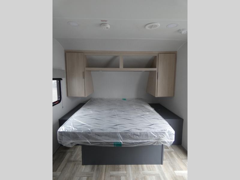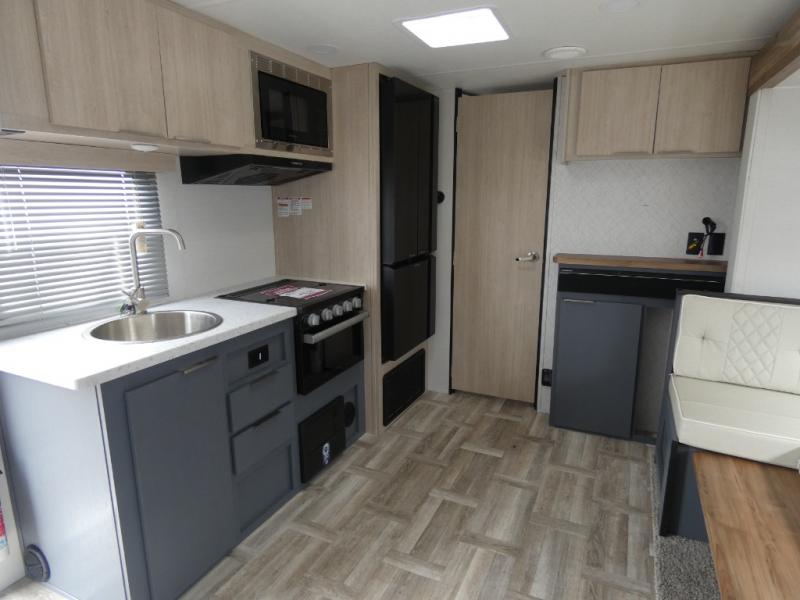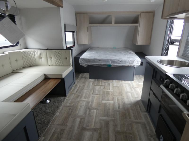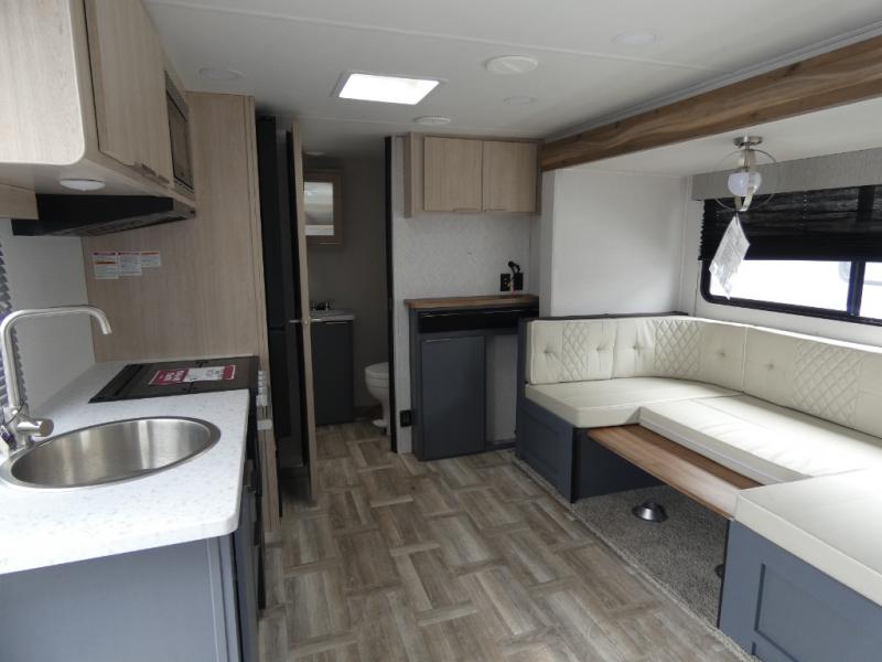 Looking to travel to see new campgrounds and enjoy the outdoors? This trailer offers you that choice then you can return to inside comforts with a queen bed and dual wardrobes and a U-shaped dinette slide out that allows you to provide more sleeping space. The galley kitchen offers a 2-in-1 gas oven and range, plus a large two-door 12V refrigerator and a microwave. The rear full bathroom might just be the reason you wanted this RV thanks to the privacy, the linen storage, and all the amenities that allow you to skip the public facilities.