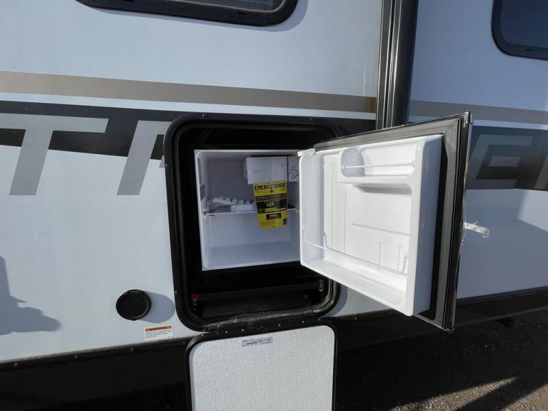 With any Tracer travel trailer by Prime Time RV, you will enjoy a lightweight, easy to tow RV for all your outdoor adventures. Each one is constructed with Eternabond construction that includes laminated aluminum framed walls, floor, and roof for ultra durability. You will be able to extend your camping season thanks to the fully enclosed underbelly, the 30K BTU furnace, and the 15,000 BTU A/C. The Tracer travel trailers are packed with exterior conveniences to make each trip hassle-free, like the power tongue jack and electric stabilizer jacks, the Doggy D-ring pet securement, the universal docking center, and so much more. Head inside to find at-home comforts throughout, including solid wood core cabinetry, LED lighting with motion sensor lights in key locations, and a brushed nickel "J" spout kitchen faucet to name a few.