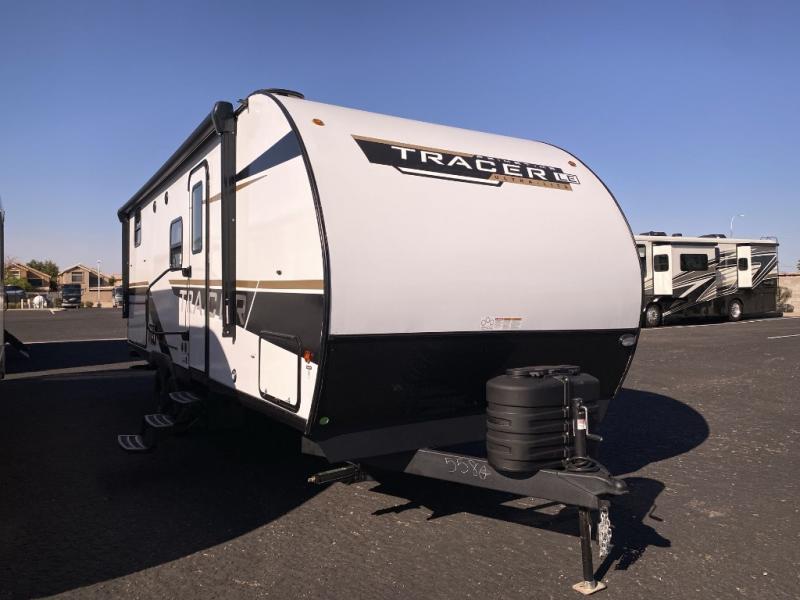 Each Tracer LE travel trailer by Prime Time is made to last with its Eternabond construction, and there is a power awning with LED lights for an inviting outdoor living space. There is a manual tongue jack and manual stabilizer jacks outside, along with an XL grab handle and steel entry steps to provide a sturdy entrance and exit into your trailer. You will fall in love with the interior that includes LED lighting, a stainless steel galley sink, a 15k BTU A/C, and a soundbar to listen to your favorite tunes. You will also love the Tracer LE Solar Package that comes with a 200W solar panel, a 40A MPPT charge controller, and a solar disconnect switch for off-grid capabilities!