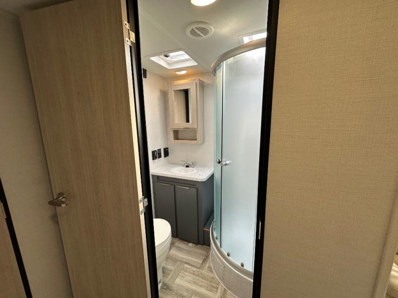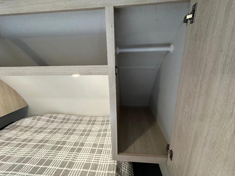 The cook in the family will love this trailer with its rear kitchen which includes all the appliances and an undermount stainless steel sink, plus windows for views. The slide out in the main living area provides more elbow room and includes a booth dinette with under bench storage, a pantry for dry goods and a wardrobe for your guests. The full bathroom offers a radius shower and vanity, and the front bedroom gives you privacy, a queen bed with wardrobes, and the second entry/exit door for convenience.