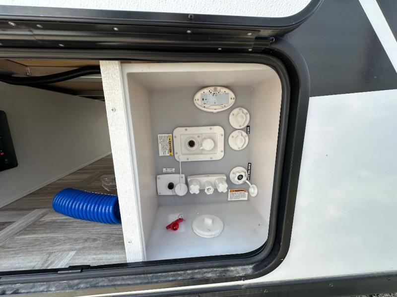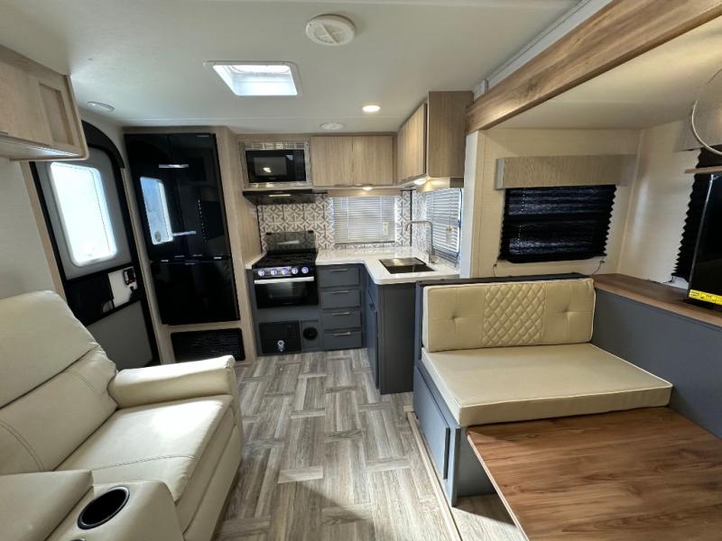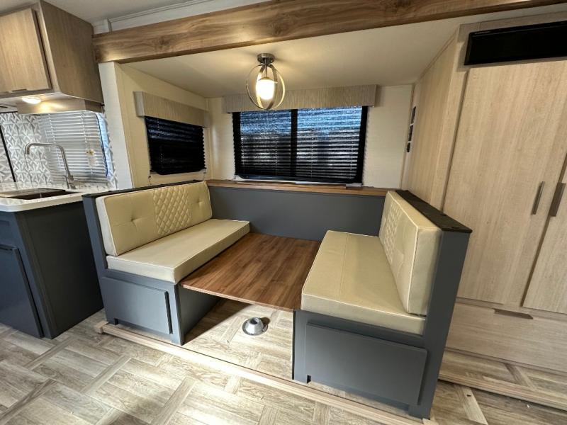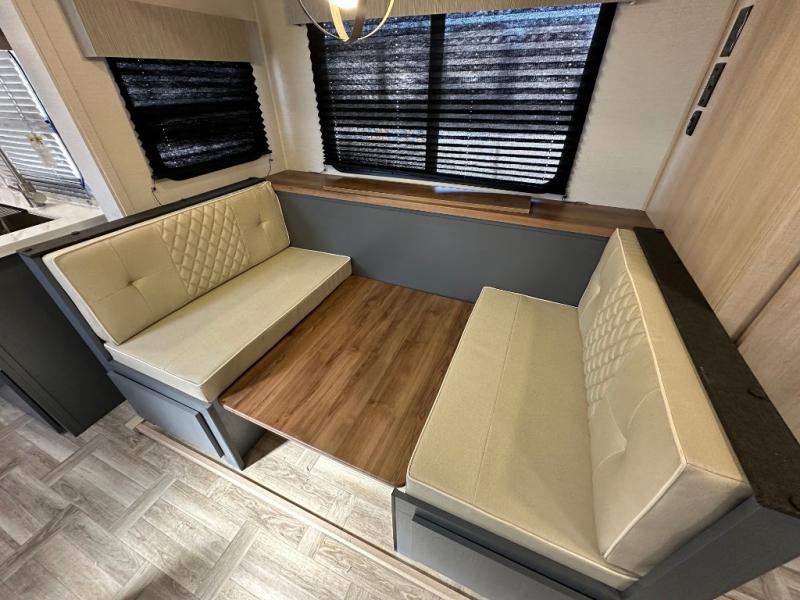 With any Tracer travel trailer by Prime Time RV, you will enjoy a lightweight, easy to tow RV for all your outdoor adventures. Each one is constructed with Eternabond construction that includes laminated aluminum framed walls, floor, and roof for ultra durability. You will be able to extend your camping season thanks to the fully enclosed underbelly, the 30K BTU furnace, and the 15,000 BTU A/C. The Tracer travel trailers are packed with exterior conveniences to make each trip hassle-free, like the power tongue jack and electric stabilizer jacks, the Doggy D-ring pet securement, the universal docking center, and so much more. Head inside to find at-home comforts throughout, including solid wood core cabinetry, LED lighting with motion sensor lights in key locations, and a brushed nickel "J" spout kitchen faucet to name a few.