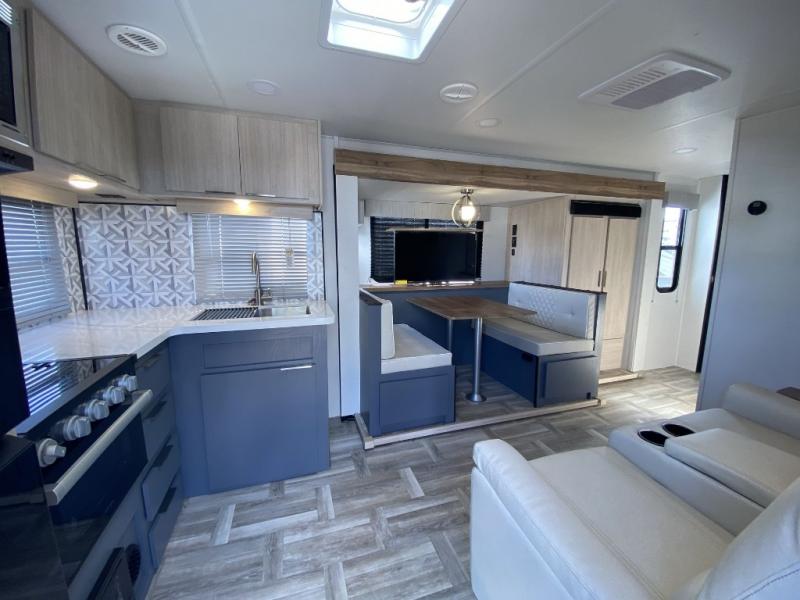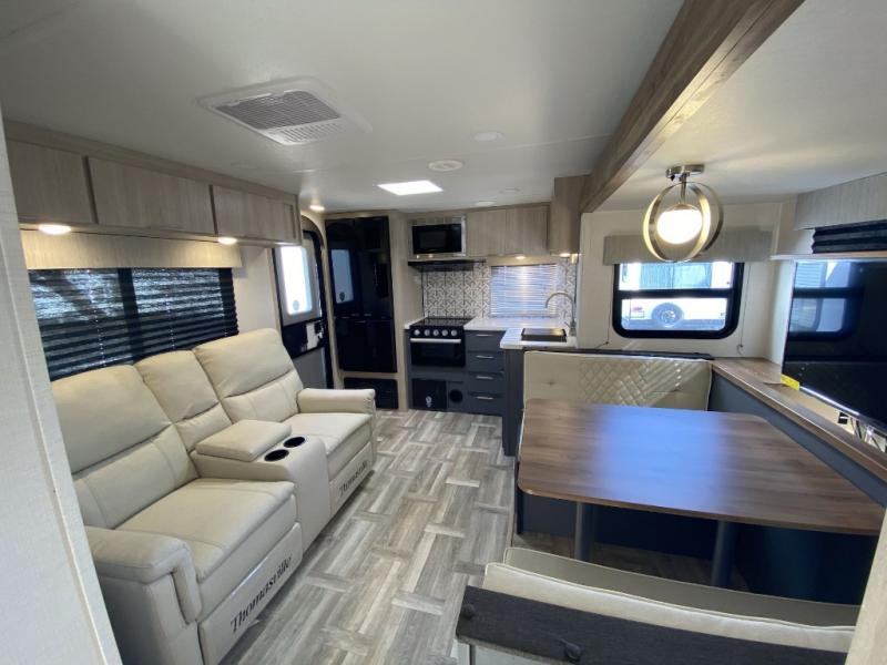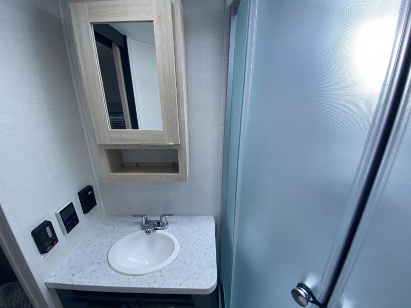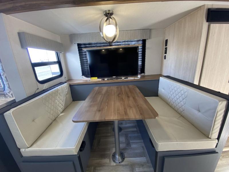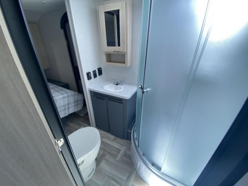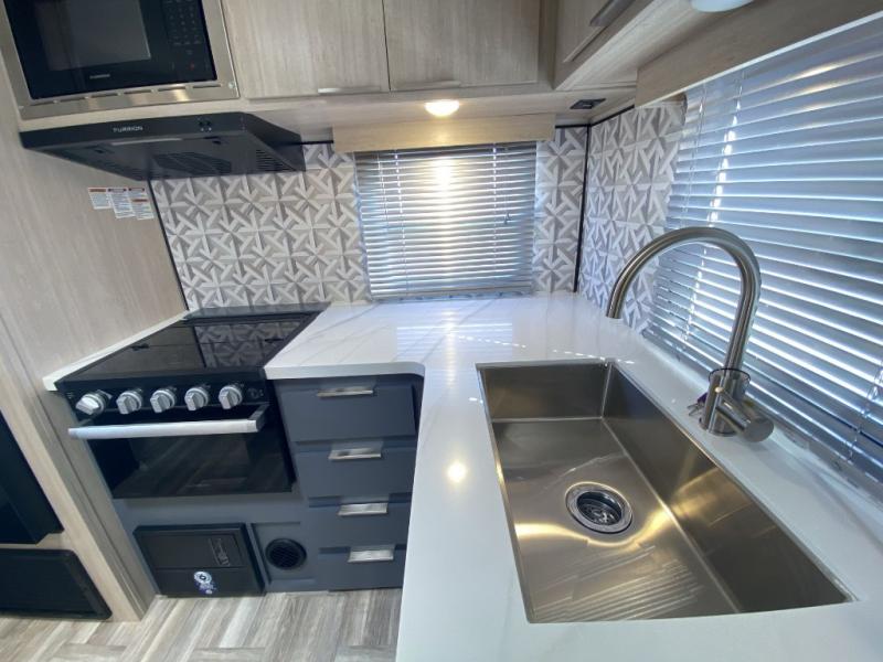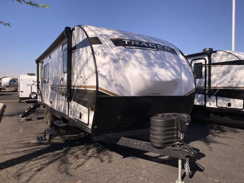 With any Tracer travel trailer by Prime Time RV, you will enjoy a lightweight, easy to tow RV for all your outdoor adventures. Each one is constructed with Eternabond construction that includes laminated aluminum framed walls, floor, and roof for ultra durability. You will be able to extend your camping season thanks to the fully enclosed underbelly, the 30K BTU furnace, and the 15,000 BTU A/C. The Tracer travel trailers are packed with exterior conveniences to make each trip hassle-free, like the power tongue jack and electric stabilizer jacks, the Doggy D-ring pet securement, the universal docking center, and so much more. Head inside to find at-home comforts throughout, including solid wood core cabinetry, LED lighting with motion sensor lights in key locations, and a brushed nickel "J" spout kitchen faucet to name a few.